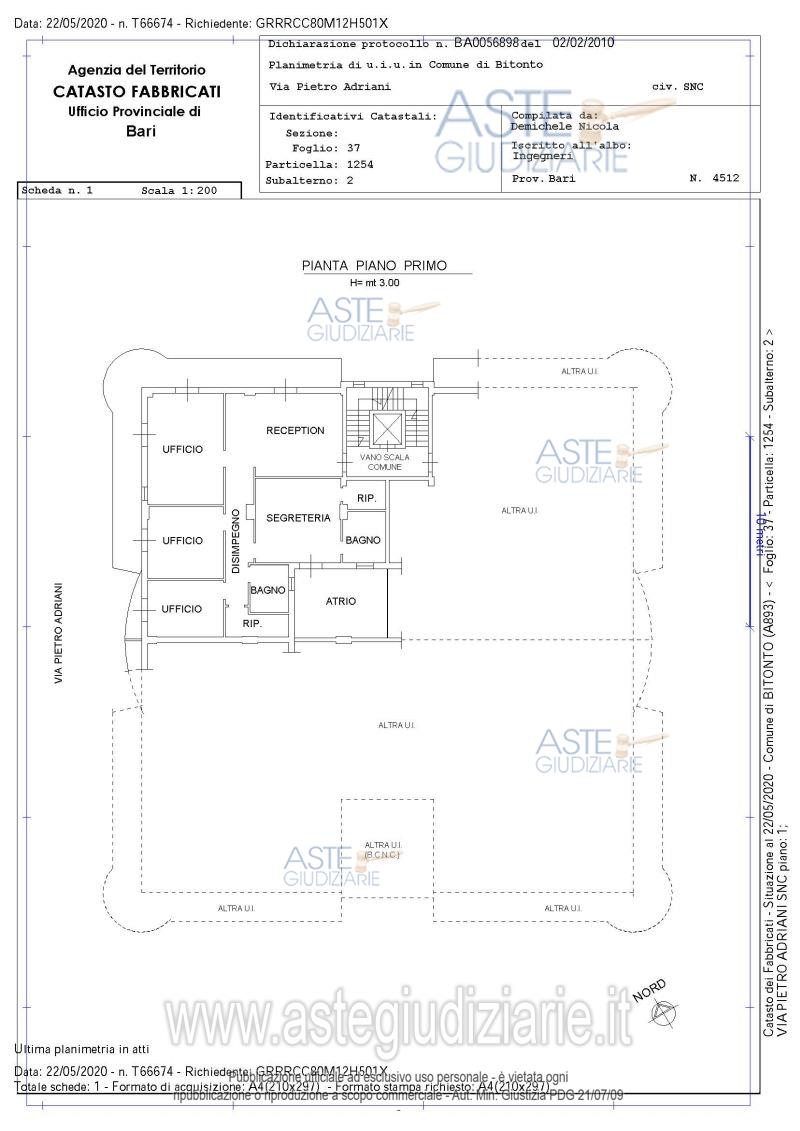 Vendita all'asta Senza incanto, con gara telematica asincrona - LOTTO 21: Immobile a piano primo adibito a uso ufficio. All’immobile si accede dal vano scala comune dotato di predisposizione strutturale per ascensore ed è costituito da reception, tre uffici, ripostiglio, servizio igienico e vano segreteria con annesso ripostiglio e servizio igienico di pertinenza. Completa la proprietà posto auto scoperto di pertinenza ubicato all'interno del cortile comune. Prezzo base € 69.610,00 (offerta minima € 52.500,00). Data inizio operazioni di vendita: 16/09/2026 ore 17:00. Giudice: Dott. Antonio Ruffino.