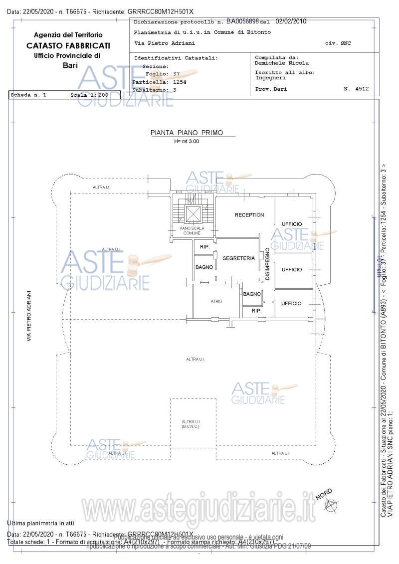 Vendita all'asta Senza incanto, con gara telematica asincrona - LOTTO 22: Immobile a piano primo adibito a uso ufficio. All’immobile si accede dal vano scala comune dotato di predisposizione strutturale per ascensore ed è costituito da reception, tre uffici, ripostiglio, servizio igienico e vano segreteria con annesso ripostiglio e servizio igienico di pertinenza. Completa la proprietà posto auto scoperto di pertinenza ubicato all’interno del cortile comune. Prezzo base € 66.900,00 (offerta minima € 50.200,00). Data inizio operazioni di vendita: 16/09/2026 ore 17:00. Giudice: Dott. Antonio Ruffino.
