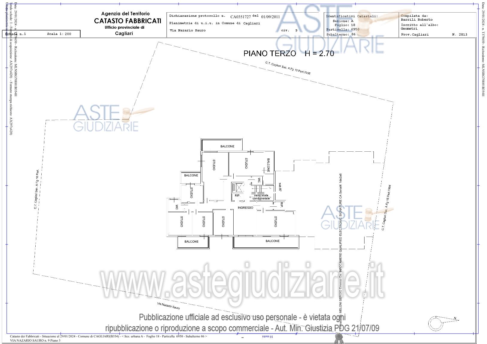 Vendita all'asta Senza incanto, con gara telematica sincrona - LOTTO 1: Lotto Unico: quota pari al 100% della piena proprietà dell'immobile sito nel Comune di Cagliari, costituito da: n° 1 appartamento ad uso ufficio, CF Fg. A/18 part. 6950 sub. 86, cat. A/10, via Nazario Sauro 9, piano 3; n° 2 immobili destinati a cantina, CF Fg. A/18 part. 6950 sub. 93-94, via Nazario Sauro 13, piano S1; n° 1 posto auto coperto nell’autorimessa al piano S1, CF Fg. A/18 part. 6950 sub. 34 e n° 3 posti auto scoperti CF Fg. A/18 part. 6950 sub. 76-77-78, via Nazario Sauro 13, piano T. Prezzo base € 696.000,00 (offerta minima € 696.000,00). Data vendita 10/12/2025 ore 10:00. Giudice Dott. Gaetano Savona. Curatore Dott. Giuseppe Marongiu - Email "studio@studiomarongiu.it"; Tel. 0704560865. Rif. Tribunale di Cagliari - Liquidazione giudiziale(cci) n. 71/2023