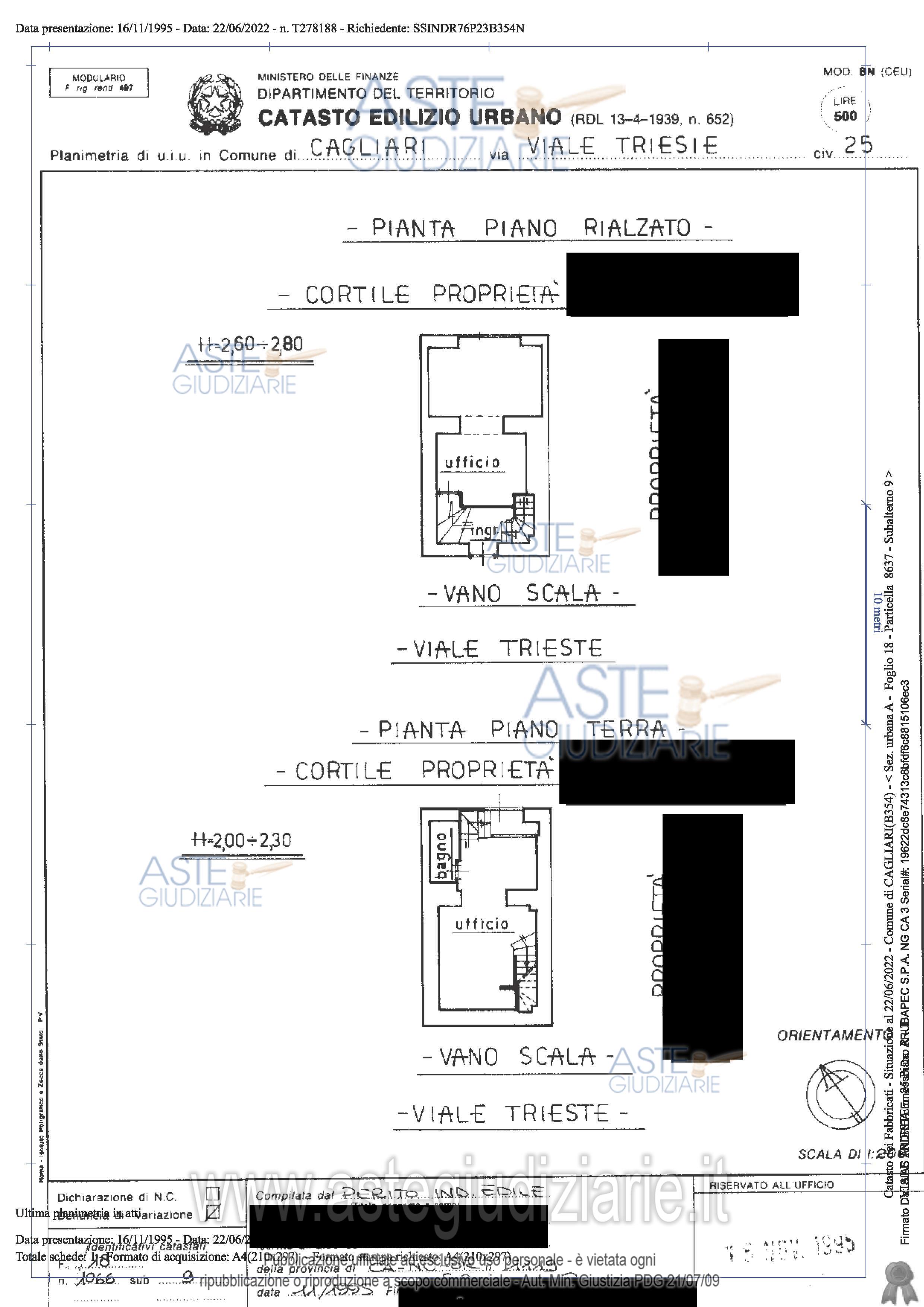 Vendita all'asta Senza incanto, con gara telematica asincrona - LOTTO 1: Quota pari a 1/1 del diritto di proprietà su due immobili ad uso ufficio inseriti all'interno di un maggior fabbricato ubicato in Viale Trieste n°25 nel Comune di Cagliari, siti rispettivamente al piano R-T e primo. Prezzo base € 225.000,00 (offerta minima € 168.750,00). Data inizio operazioni di vendita: 14/07/2026 ore 16:00. Giudice Valentina Frongia. Professionista delegato alla vendita Avv. Alessia Massoni - Email "alessiamass@yahoo.it"; Tel. 070345052. Custode Giudiziario Ivg Cagliari - Email "ivg.visiteimmobili@tiscali.it"; Tel. 0702299036. Rif. Tribunale di Cagliari - Esecuzione immobiliare post legge 80 n. 381/2016