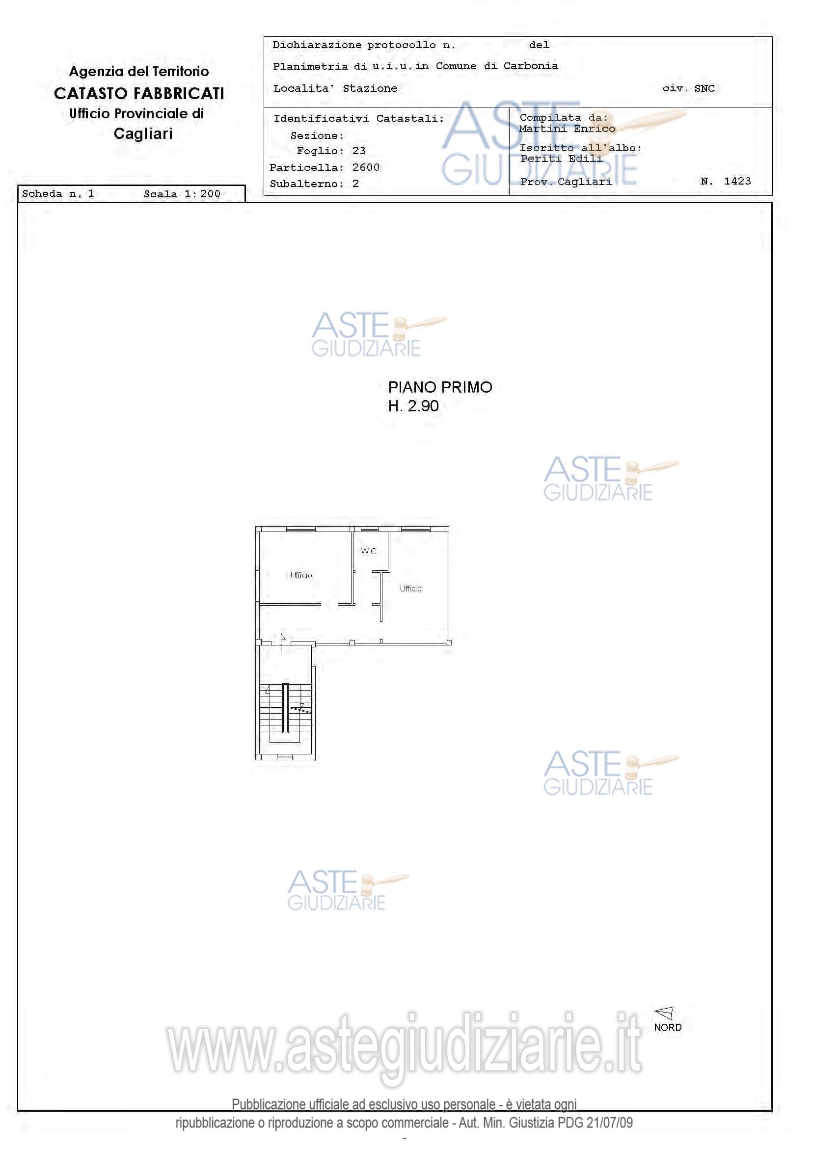 Vendita all'asta Senza incanto, con gara telematica asincrona - LOTTO 1: In Comune di Carbonia, quota pari all’intero del diritto di proprietà su appartamento uso ufficio al piano primo del maggior fabbricato con accesso dalla Via Stazione snc, composto da disimpegno, due camere, un bagno. Categoria A/10, consistenza vani 2,5, superficie catastale mq. 61 . Prezzo base € 17.318,00 (offerta minima € 12.989,00). Data inizio operazioni di vendita: 19/05/2026 ore 12:00. Giudice Gaetano Savona. Curatore Dott. Edoardo Sanna - Email "studioedoardosanna@gmail.com"; Tel. 070490790. Rif. Tribunale di Cagliari - Liquidazione giudiziale(cci) n. 17/2023