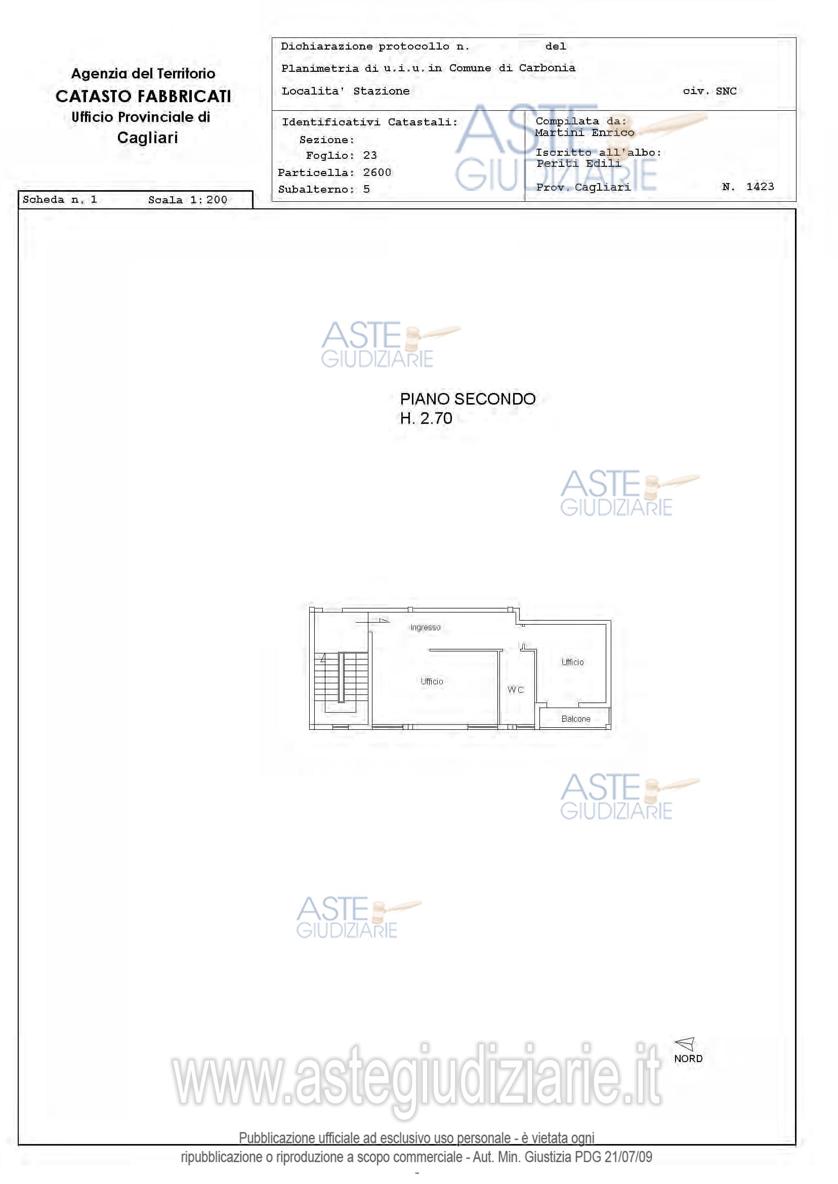 Vendita all'asta Senza incanto, con gara telematica asincrona - LOTTO 2: In Comune di Carbonia, quota pari all’intero del diritto di proprietà su appartamento uso ufficio al piano secondo del maggior fabbricato con accesso dalla Via Stazione snc, composto da disimpegno, sala, camera, bagno, balcone. Categoria A/10, consistenza vani 2,5, superficie catastale totale mq. 68. Prezzo base € 18.824,00 (offerta minima € 14.118,00). Data inizio operazioni di vendita: 19/05/2026 ore 12:00. Giudice Gaetano Savona. Curatore Dott. Edoardo Sanna - Email "studioedoardosanna@gmail.com"; Tel. 070490790. Rif. Tribunale di Cagliari - Liquidazione giudiziale(cci) n. 17/2023