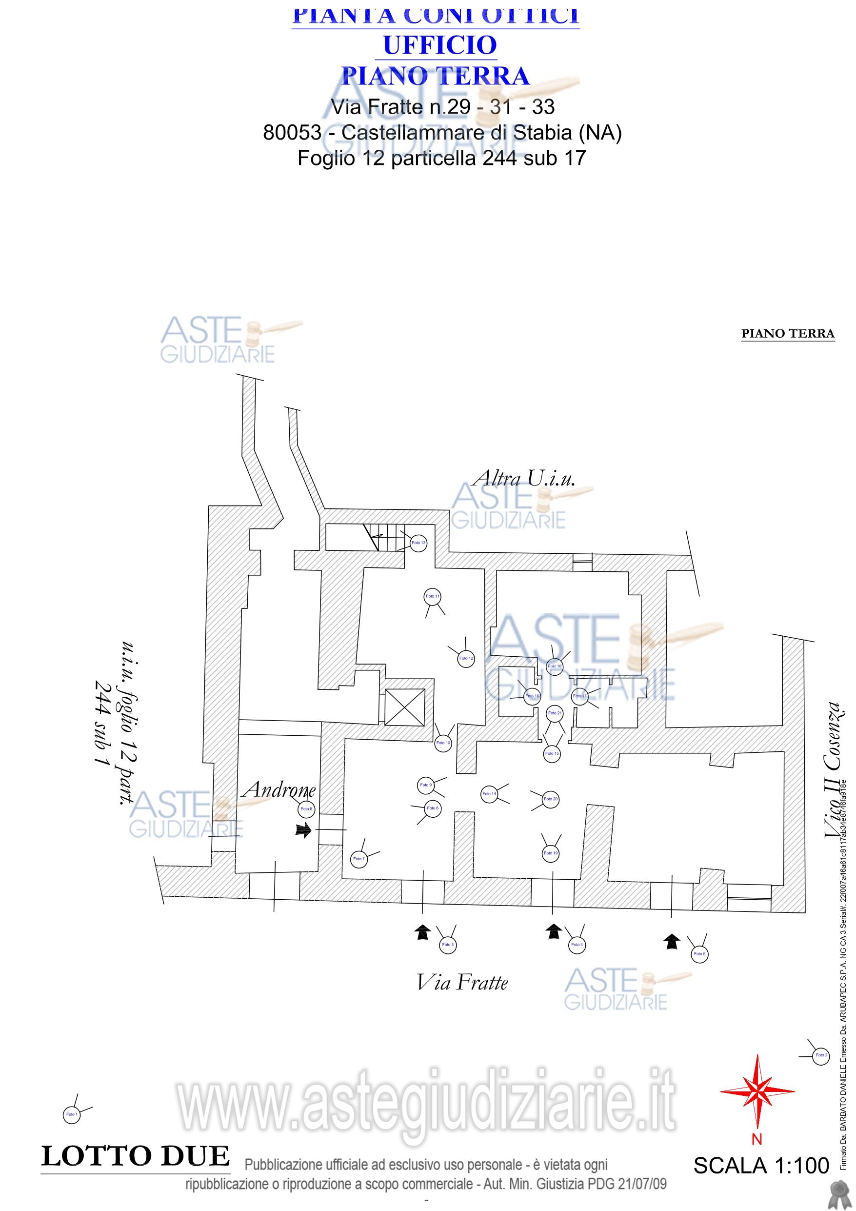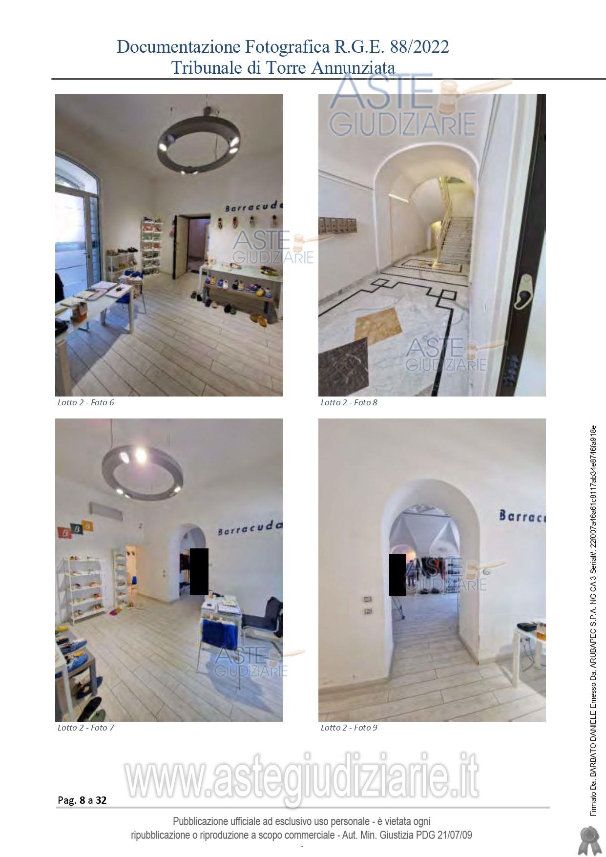 Vendita all'asta Senza incanto, con gara telematica asincrona - LOTTO 2: Piena ed intera proprietà di un ufficio al pianoterra ubicato in Castellammare di Stabia (NA), Via Fratte n° 29 - 31 piano T. Prezzo base € 306.500,00 (offerta minima € 229.875,00). Data inizio operazioni di vendita: 31/03/2026 ore 14:30. Professionista delegato alla vendita Avv. Stefania Scotto Di Ciccariello - Email "stefania.scotto@alice.it"; Cell. 360414742; Tel. 360414742. Custode Giudiziario Avv. Stefania Scotto Di Ciccariello - Email "stefania.scotto@alice.it"; Cell. 360414742; Tel. 360414742. Rif. Tribunale di Torre Annunziata - Esecuzione immobiliare post legge 80 n. 88/2022