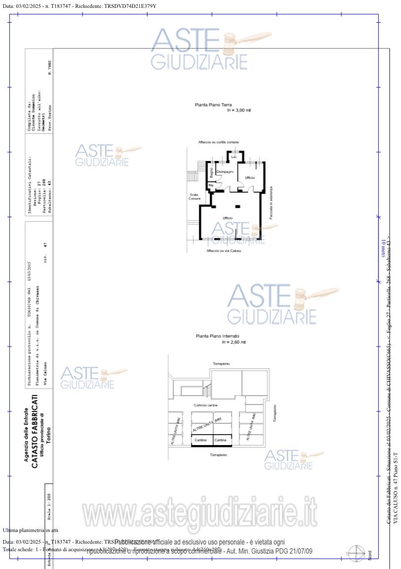 Vendita all'asta Senza incanto, con gara telematica asincrona - LOTTO UNICO: Piena proprietà di ufficio e due locali cantina al piano interrato, entrostante fabbricatoresidenziale plurifamiliare, denominato "Condominio Alpi". Prezzo base € 83.500,00 (offerta minima € 62.625,00). Data inizio operazioni di vendita: 14/04/2026 ore 09:15. Giudice Dott. Augusto Salustri. Professionista delegato alla vendita Avv. Simone Ciochetto. Custode Giudiziario Avv. Simone Ciochetto - Email "coda@avv-ciochetto.it". Rif. Tribunale di Ivrea - Espropriazione immobiliare (cartabia) n. 252/2024