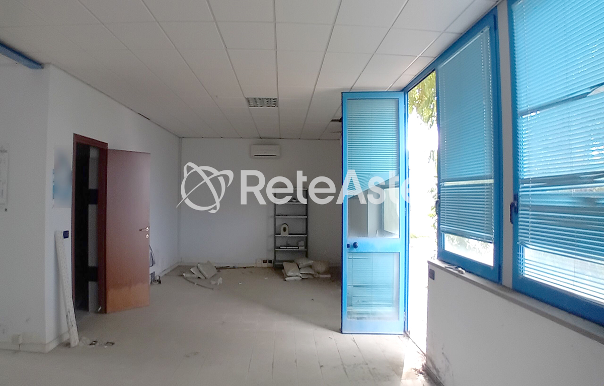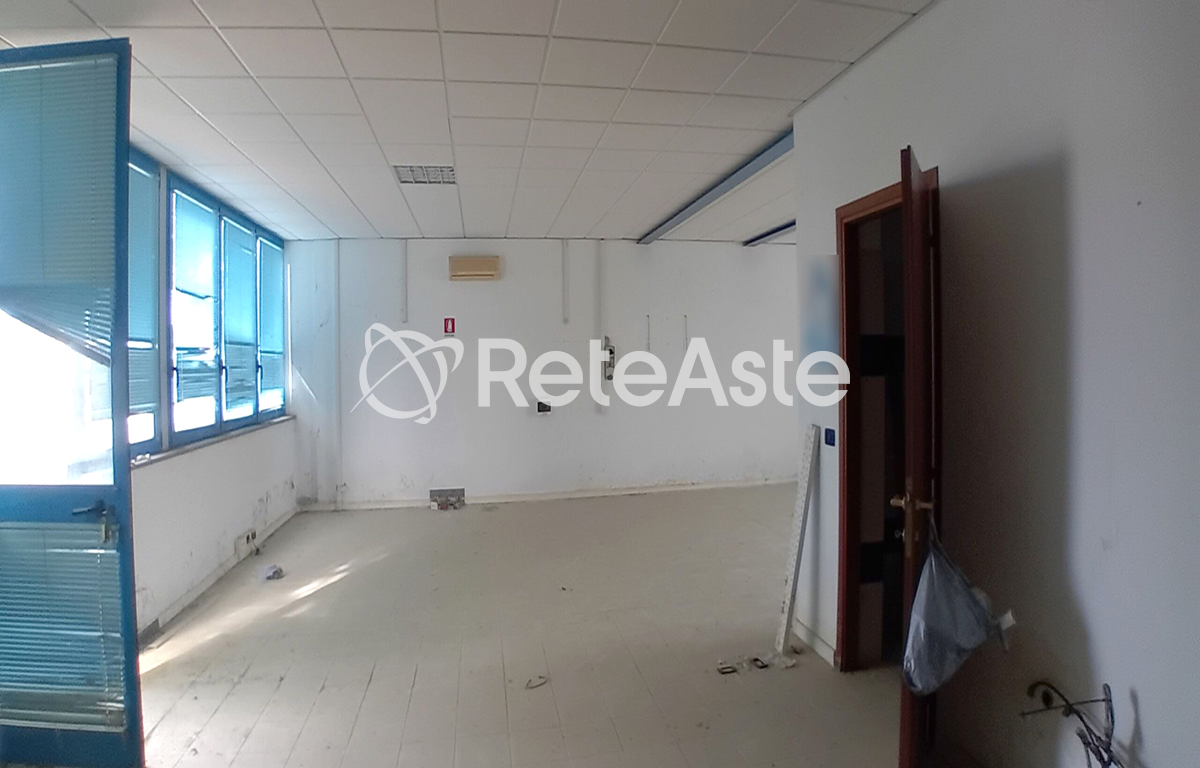 Ufficio al piano terreno composto da unico vano con servizi igienici e antibagno per 140 mq oltre 6 posti auto di circa 11 metri quadri ciascuno.