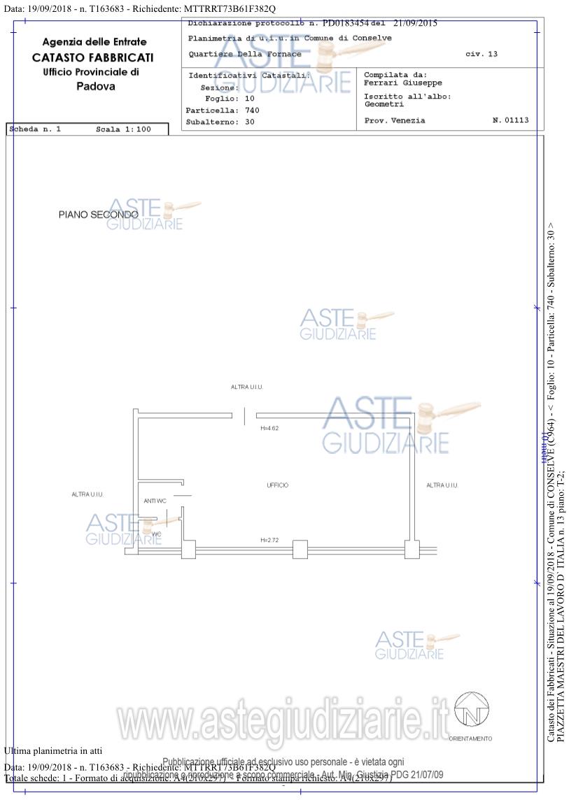 Vendita all'asta Senza incanto, con gara telematica sincrona - LOTTO 17: Ufficio al piano secondo costituito da un unico spazio dotato di bagno e anti-bagno (l'unità in vendita fa parte di un complesso condominiale realizzato negli anni 2000 su originario complesso industriale "ex-fornace"), nonché garage (con accesso da via Terrassa) che può ospitare un auto. Prezzo base € 58.382,00 (offerta minima € 43.786,50). Data vendita 11/02/2026 ore 16:00. Giudice Giovanni Giuseppe Amenduni. Professionista delegato alla vendita Avv. Stefania Faggian - Email "s.faggian@pvg.network". Custode Giudiziario Avv. Stefania Faggian - Email "s.faggian@pvg.network"; Tel. 0498774383. Rif. Tribunale di Padova - Esecuzione immobiliare post legge 80 n. 39/2018