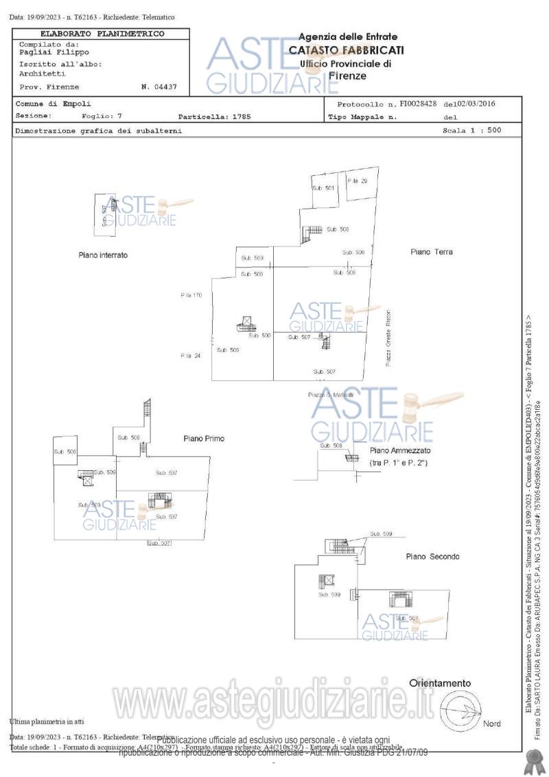 Vendita all'asta Senza incanto, con gara telematica sincrona - LOTTO UNICO: 1- Locale ad uso magazzino posto al piano terreno di via del Sale n.10 Empoli; 2- Fabbricato pluriplano ad uso ufficio posto nel comune di Empoli, Piazza Giacomo Matteotti n. 29 piano S1- T – 1 – 2; 3- Fabbricato ad uso ufficio con annesso resede altamente degradato posto al piano terreno e primo di Piazza Oreste Ristori n.1 Empoli. Prezzo base € 383.400,00 (offerta minima € 287.550,00). Data vendita 23/04/2026 ore 17:00. Giudice Dott. Francesca Romana Bisegna. Professionista delegato alla vendita Avv. Andrea Porta Del Lungo - Email "portadellungo@gmail.com". Custode Giudiziario Istituto Vendite Giudiziarie Di Firenze - Email "prenota.fi@isveg.it"; Tel. 0552340830. Rif. Tribunale di Firenze - Esecuzione immobiliare post legge 80 n. 359/2022