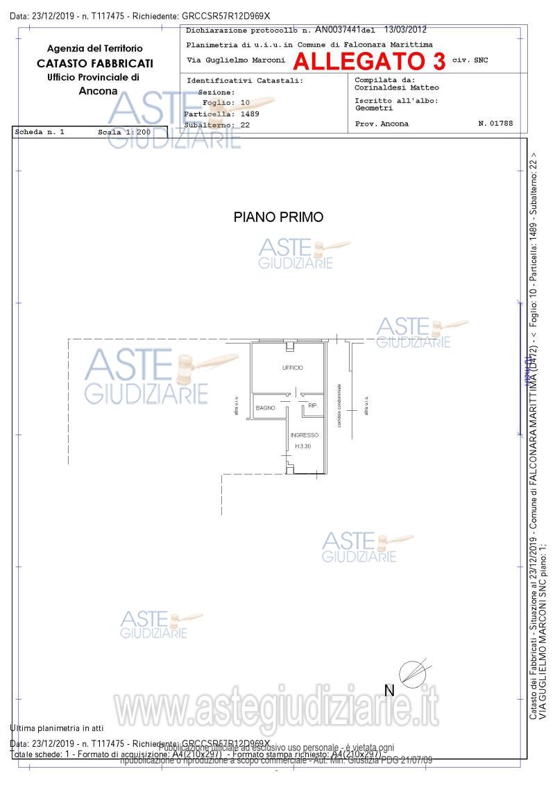 Vendita all'asta Senza incanto, con gara telematica asincrona - LOTTO 7: Immobile ad uso ufficio posto al piano primo, di 2 vani catastali composto da ingresso, ripostiglio, bagno e un vano aduso ufficio. Prezzo base € 35.000,00 (offerta minima € 35.000,00). Data inizio operazioni di vendita: 13/11/2025 ore 11:00. In caso di più offerte valide si procederà a gara che inizierà il 13/11/2025 ore 11:00 e terminerà il 19/11/2025 ore 11:00. Giudice Dott. Giuliana Filippello. Curatore Dott. Camillo Catana Vallemani. Rif. Tribunale di Ancona - Fallimentare (nuovo rito) n. 38/2019