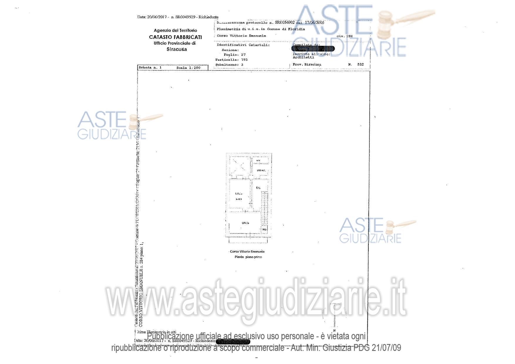 Vendita all'asta Senza incanto, con gara telematica sincrona mista - LOTTO 2: Quota di 1/1 del diritto di piena proprietà unità immobiliare sita in Floridia (SR) in corso Vittorio Emanuele n. 282 (in visura è indicato 284) al piano primo, identificata al catasto fabbricati del Comune di Floridia al foglio 25 p.lla 2136 sub. 3-4 graffate (cat. A/10; cl. U, consistenza 3,5 vani, superficie catastale tot 87 mq, r,c, € 433,82). Prezzo base € 38.000,00 (offerta minima € 28.500,00). Data vendita 22/04/2026 ore 10:00. Giudice Concita Cultrera. Professionista delegato alla vendita Avv. Simona Matarazzo - Email "avv.simona.matarazzo@gmail.com"; Tel. 0931096234. Rif. Tribunale di Siracusa - Contenzioso civile n. 4645/2023