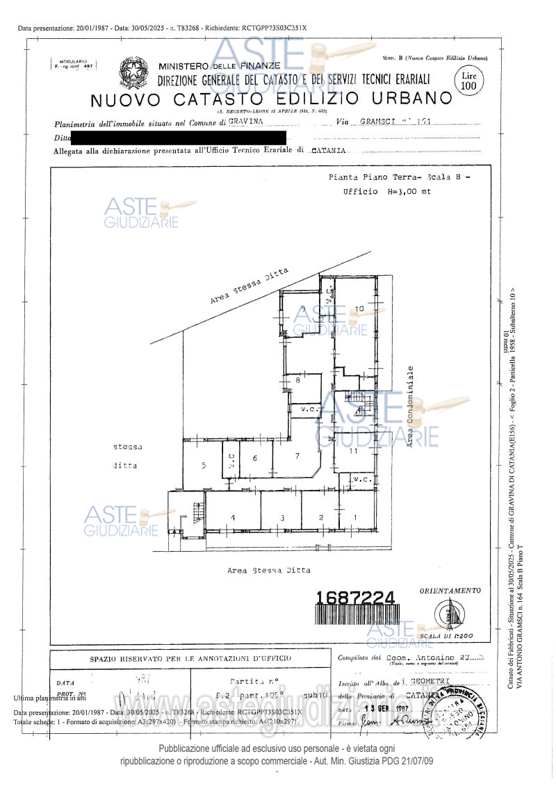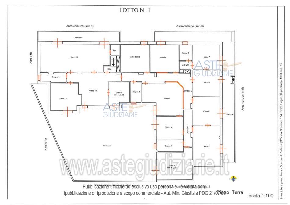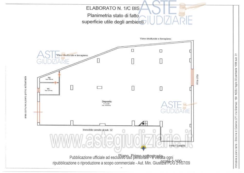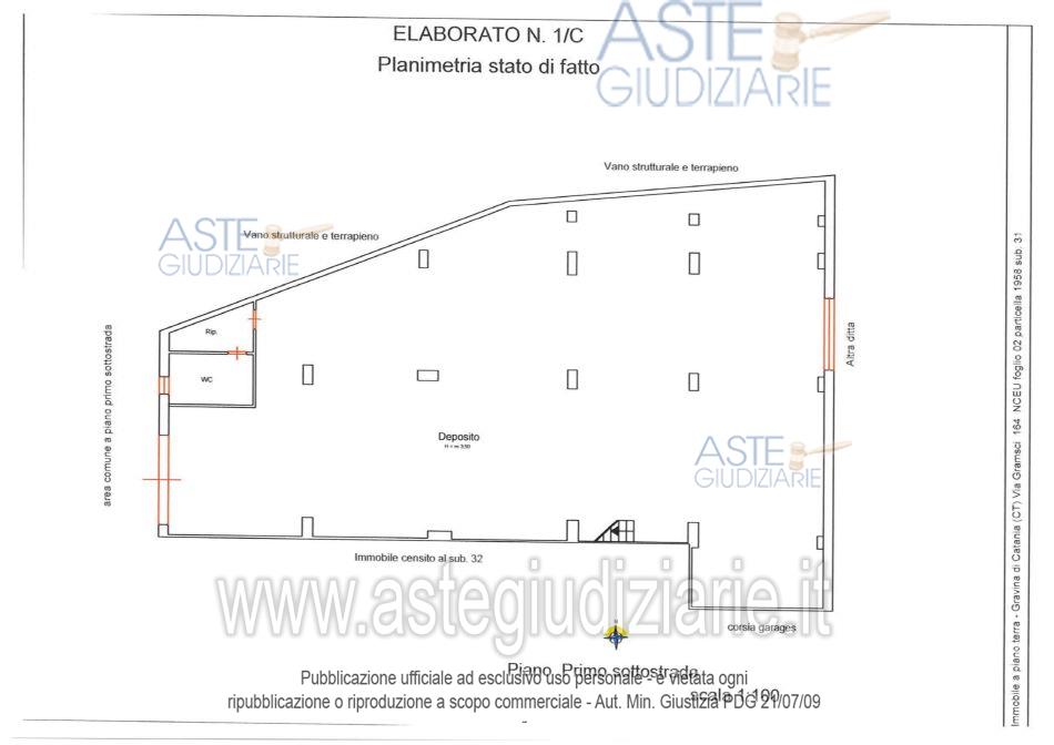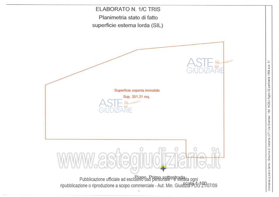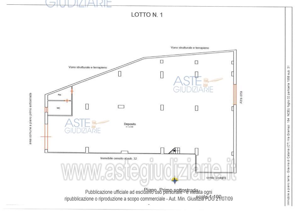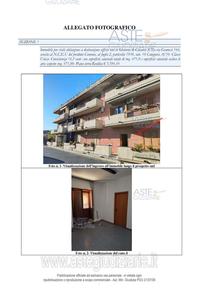 Vendita all'asta Senza incanto, con gara telematica asincrona - LOTTO 1: Lotto unico composto da: 1) Immobile per civile abitazione a destinazione ufficio al paino terradi 14,5 vani e superficie pari a circa 471 metri quadrati; 2) Deposito al piano primo sottostradadi circa 298 metri quadrati. Prezzo base € 343.000,00 (offerta minima € 257.250,00). Data inizio operazioni di vendita: 27/05/2026 ore 11:30. Custode Giudiziario Avv. Noemi Francesca Barbagallo - Email "noemibarbagallo@tiscali.it". Curatore Avv. Noemi Francesca Barbagallo. Rif. Tribunale di Catania - Fallimentare (nuovo rito) n. 100/2019