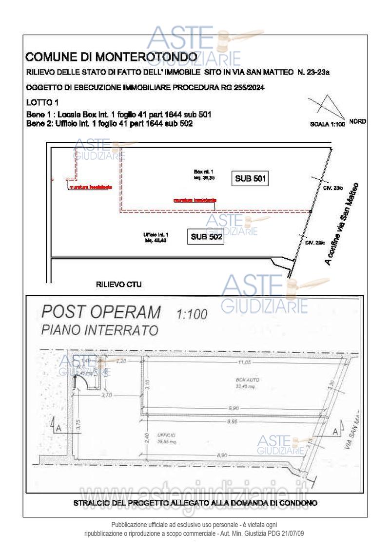 Vendita all'asta Senza incanto, con gara telematica asincrona - LOTTO 1: Quota di proprietà 100/100 del bene costituito da Ufficio e da Garage ubicati a Monterotondo (RM) - Via San Matteo, 23/c, interno 1, piano S1. Prezzo base € 71.863,00 (offerta minima € 53.897,25). Data inizio operazioni di vendita: 28/05/2026 ore 14:00. Professionista delegato alla vendita Dott. Anna Maria Salta - Email "saltaannamaria@gmail.com"; Cell. 3466782573. Custode Giudiziario Ivg Di Roma Srl - Email "pvp@ivgroma.it"; Tel. 0689569801. Rif. Tribunale di Tivoli - Esecuzione immobiliare post legge 80 n. 255/2024