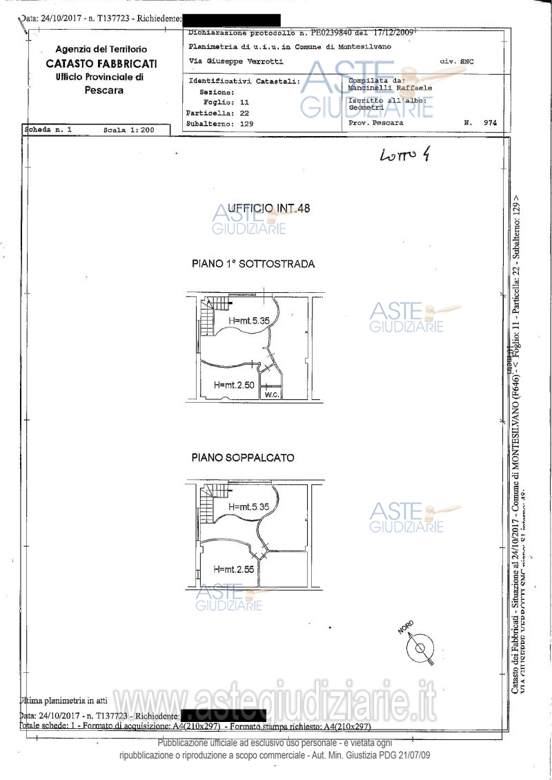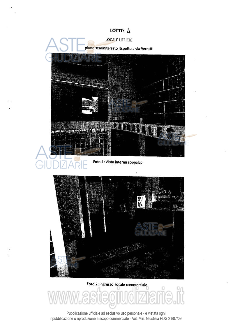 Vendita all'asta Senza incanto, con gara telematica asincrona - LOTTO 4: Ufficio composto da un vano unico con annesso wc e ripostiglio con accesso dal vano scala. Prezzo base € 47.714,06 (offerta minima € 35.785,55). Data inizio operazioni di vendita: 25/11/2025 ore 15:30. Giudice Luigina Tiziana Marganella. Professionista delegato alla vendita Not. Erminia Amicarelli - Email "eamicarelli@notariato.it"; Tel. 085388135. Custode Giudiziario Not. Erminia Amicarelli - Email "eamicarelli@notariato.it"; Tel. 085388135. Rif. Tribunale di Pescara - Esecuzione immobiliare post legge 80 n. 342/2012