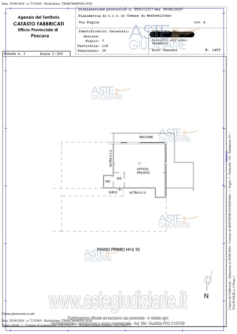 Vendita all'asta Senza incanto, con gara telematica asincrona - LOTTO UNICO: Diritti di piena proprietà di un immobile ad uso ufficio al primo piano, composto da un unicoambiente e un w.c. ed è stato suddiviso in un ingresso e due vani adibiti ad ufficio mediantel’installazione di pareti attrezzate ed ha una superficie lorda di 144 mq – di cui 81 mq l’ufficio e63 mq il balcone terrazzo. Prezzo base € 59.179,36 (offerta minima € 44.384,55). Data inizio operazioni di vendita: 05/05/2026 ore 12:00. Professionista delegato alla vendita Dott. Carla Chiola. Custode Giudiziario Dott. Carla Chiola - Email "carla@studiochiola.com". Rif. Tribunale di Pescara - Espropriazione immobiliare (cartabia) n. 30/2024
