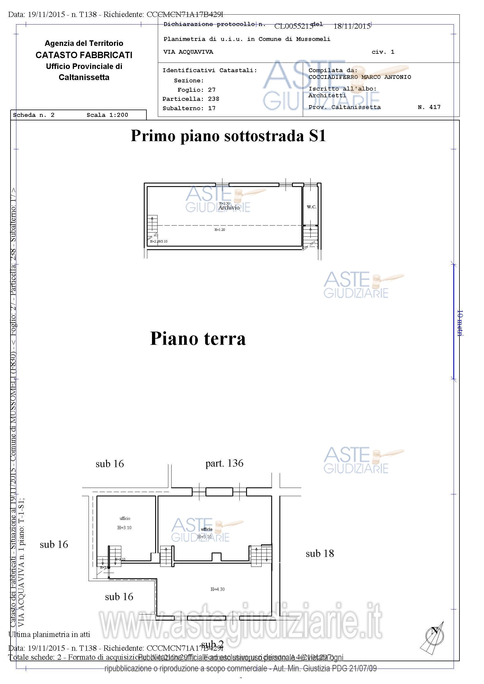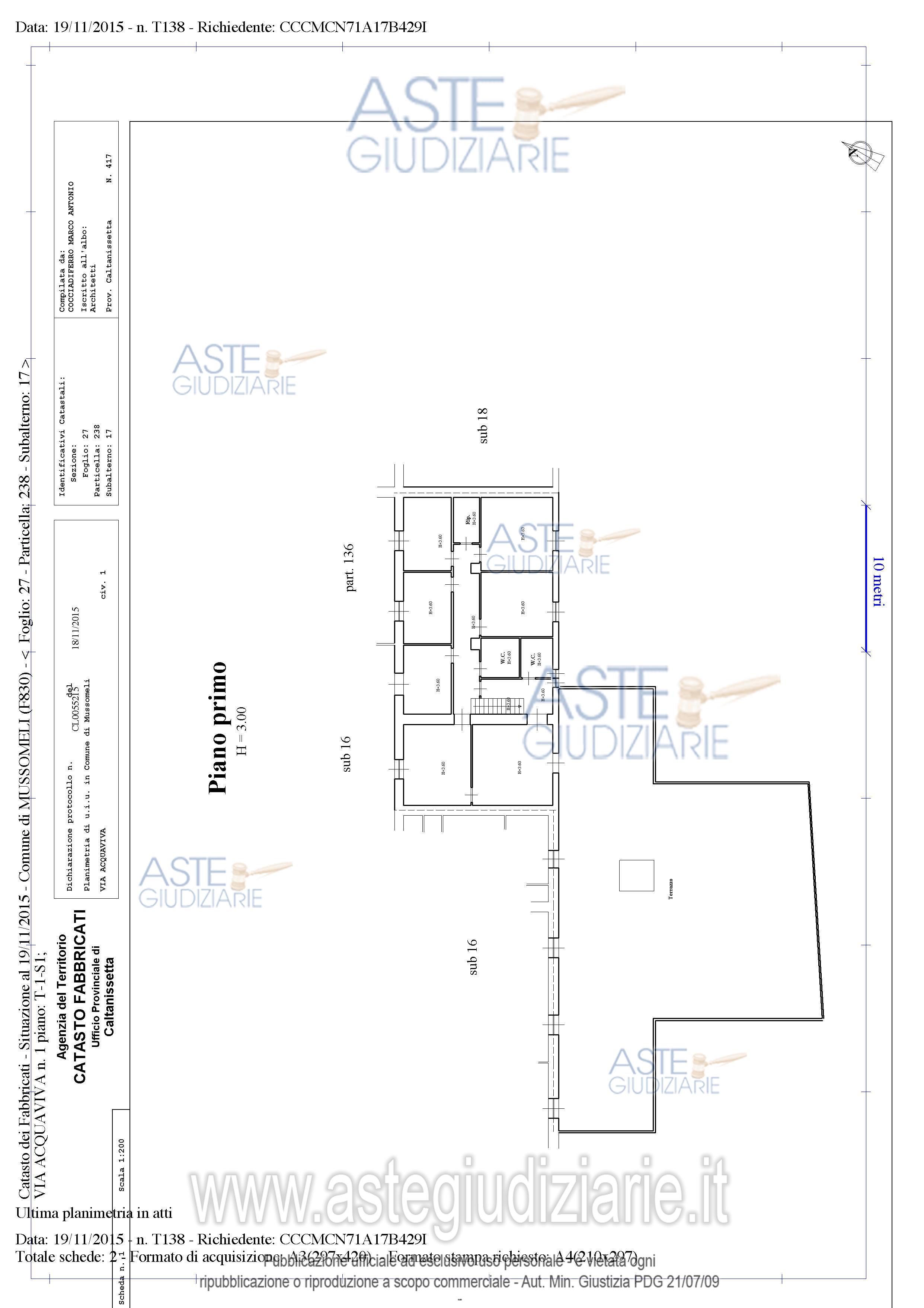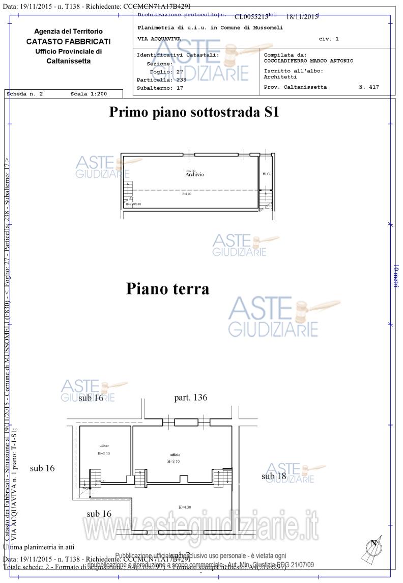 Vendita in attesa dell'emissione del nuovo bando d'asta. LOTTO 1: Piena proprietà di un immobile su tre livelli (piano sottostrada, P1 e P2) facente parte del fabbricato sito in Mussomeli, con diritto esclusivo sulla terrazza posta al piano primo e con diritto per quota proporzionale sulla corte. Ultimo prezzo base € 76.576,38 (offerta minima € 57.432,29). Giudice Francesco Lauricella. Professionista delegato alla vendita Avv. Marco Vizzini - Email "studiolegalevizzini@gmail.com". Custode Giudiziario Avv. Marco Vizzini - Email "studiolegalevizzini@gmail.com". Rif. Tribunale di Caltanissetta - Esecuzione immobiliare post legge 80 n. 81/1995