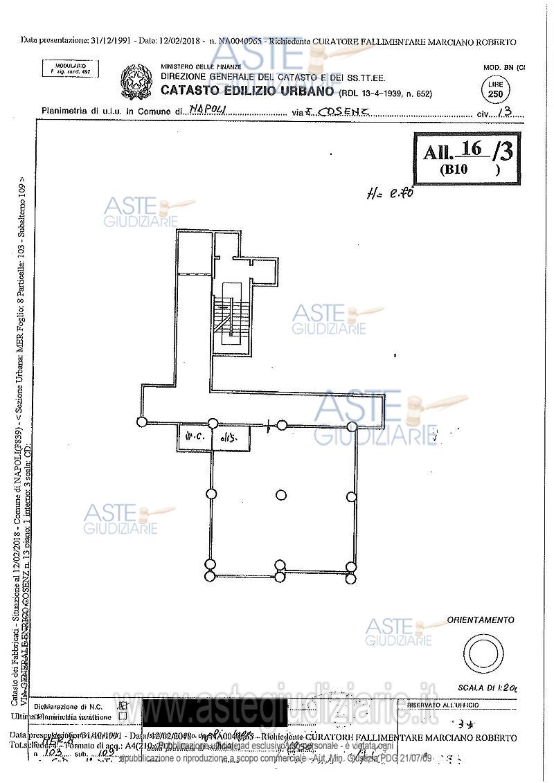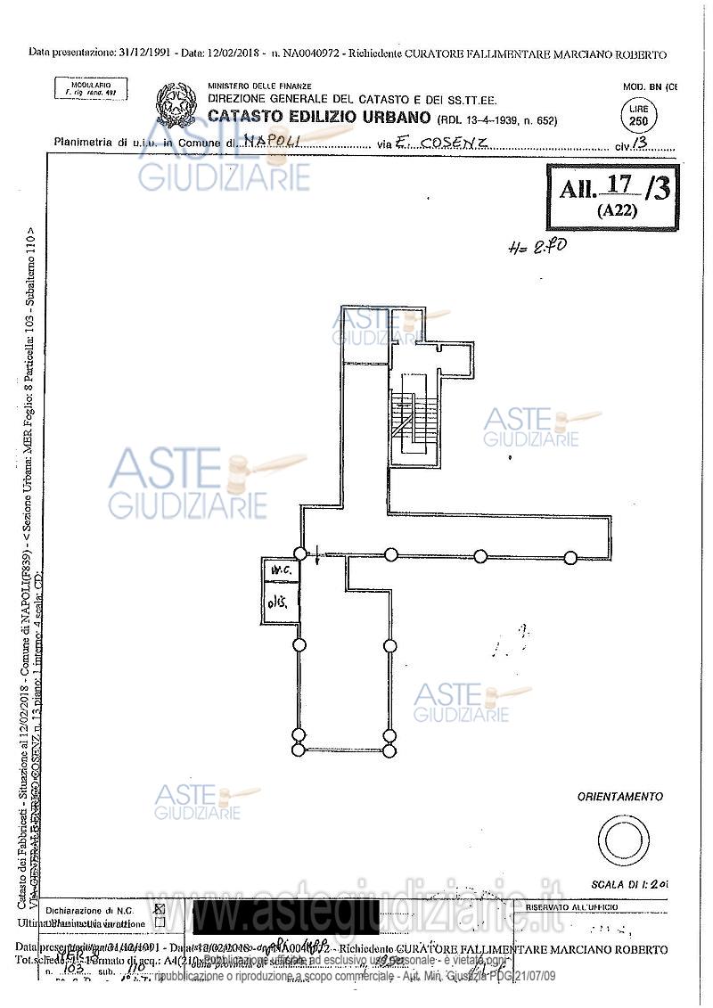 Vendita all'asta Senza incanto - LOTTO I 16 17: Lotto I lotti 16-17: Unità immobiliari destinate ad uso ufficio, nel fabbricato in Napoli, Via E. Cosenz 13.LE VISITE DEGLI IMMOBILI DA CONCORDARE CON IL CURATORE, SARANNO EFFETTUATE NELLE GIORNATE DEL: 10 SETTEMBRE 2025, 22 SETTEMBRE 2025, 6 OTTOBRE 2025, 20 OTTOBRE 2025, 10 NOVEMBRE 2025 CON PRENOTAZIONE DA EFFETTUARSI PRESSO LO STUDIO DEL CURATORE EFFETTIVAMENTE ENTRO IL: 4 SETTEMBRE 2025, 15 SETTEMBRE 2025, 29 SETTEMBRE 2025, 13 OTTOBRE 2025, 4 NOVEMBRE 2025. Prezzo base € 124.513,20 (offerta minima € 93.384,90). Data vendita 13/11/2025 ore 12:00. Giudice Dott. Francesco Paolo Feo. Curatore Dott. Roberto Marciano - Email "roberto.marciano@ass-com.it"; Tel. 0817641865. Rif. Tribunale di Napoli - Fallimentare n. 361/2002