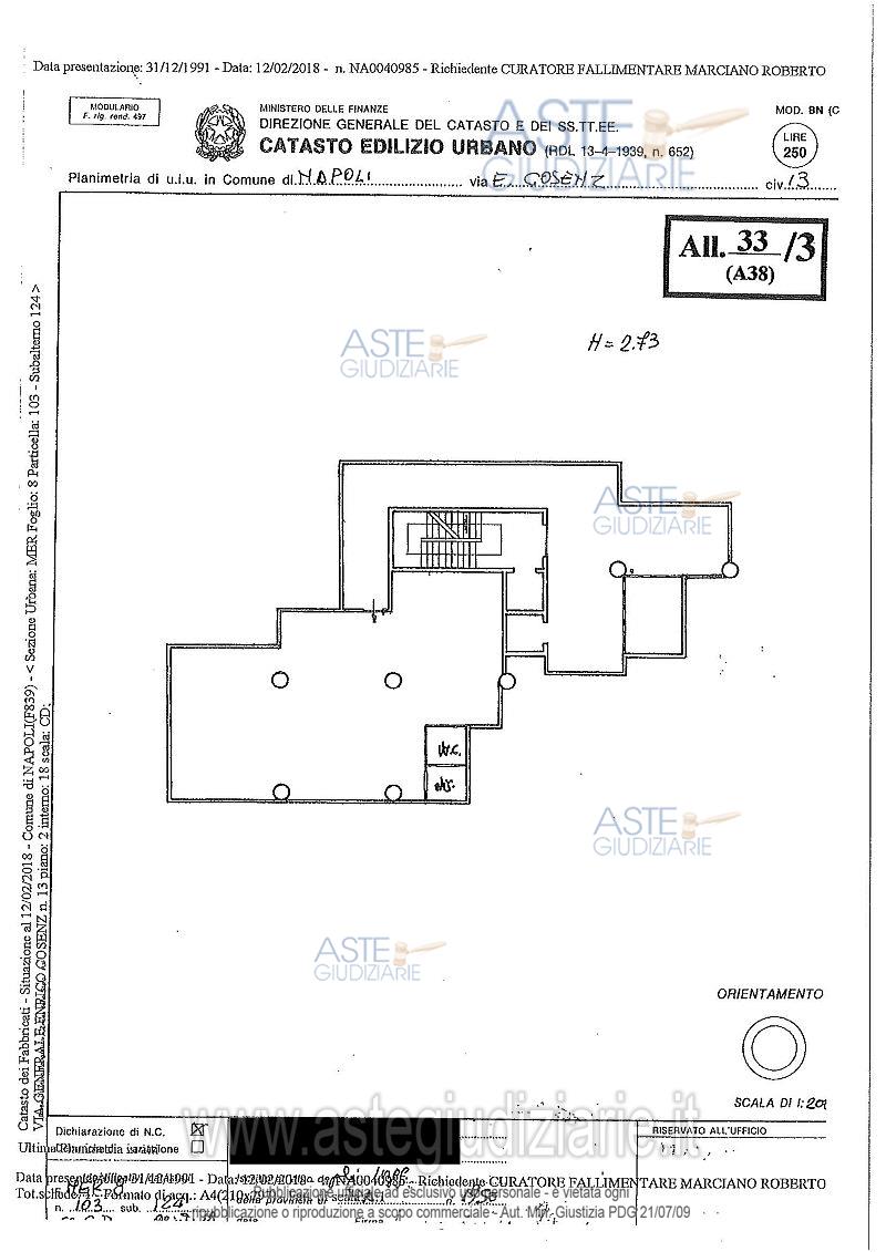 Vendita all'asta Senza incanto - LOTTO Z 33 34: Lotto Z lotti 33-34: Unità immobiliari destinate ad uso ufficio, nel fabbricato in Napoli, Via E. Cosenz 13.LE VISITE DEGLI IMMOBILI DA CONCORDARE CON IL CURATORE, SARANNO EFFETTUATE NELLE GIORNATE DEL: 10 SETTEMBRE 2025, 22 SETTEMBRE 2025, 6 OTTOBRE 2025, 20 OTTOBRE 2025, 10 NOVEMBRE 2025 CON PRENOTAZIONE DA EFFETTUARSI PRESSO LO STUDIO DEL CURATORE EFFETTIVAMENTE ENTRO IL: 4 SETTEMBRE 2025, 15 SETTEMBRE 2025, 29 SETTEMBRE 2025, 13 OTTOBRE 2025, 4 NOVEMBRE 2025. Prezzo base € 193.294,35 (offerta minima € 144.970,76). Data vendita 13/11/2025 ore 12:00. Giudice Dott. Francesco Paolo Feo. Curatore Dott. Roberto Marciano - Email "roberto.marciano@ass-com.it"; Tel. 0817641865. Rif. Tribunale di Napoli - Fallimentare n. 361/2002