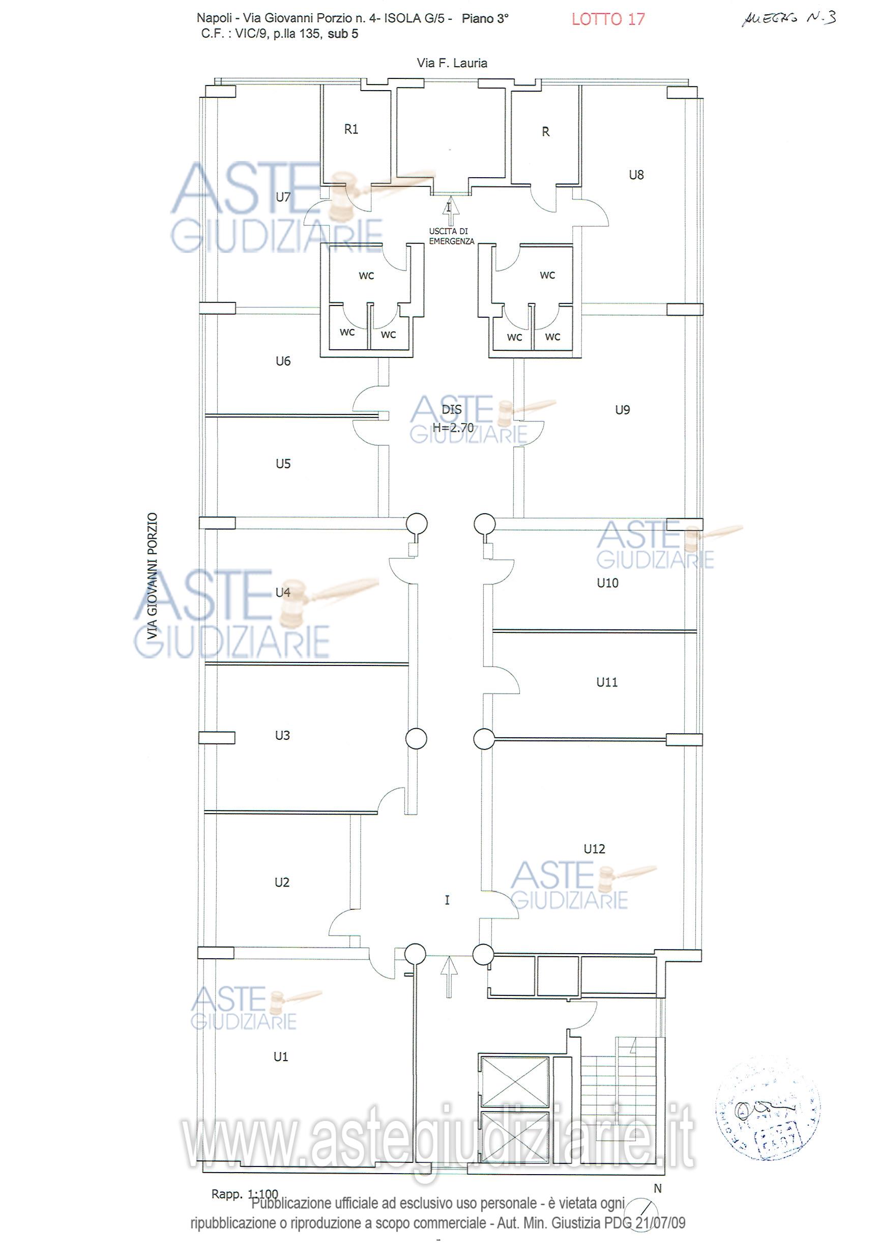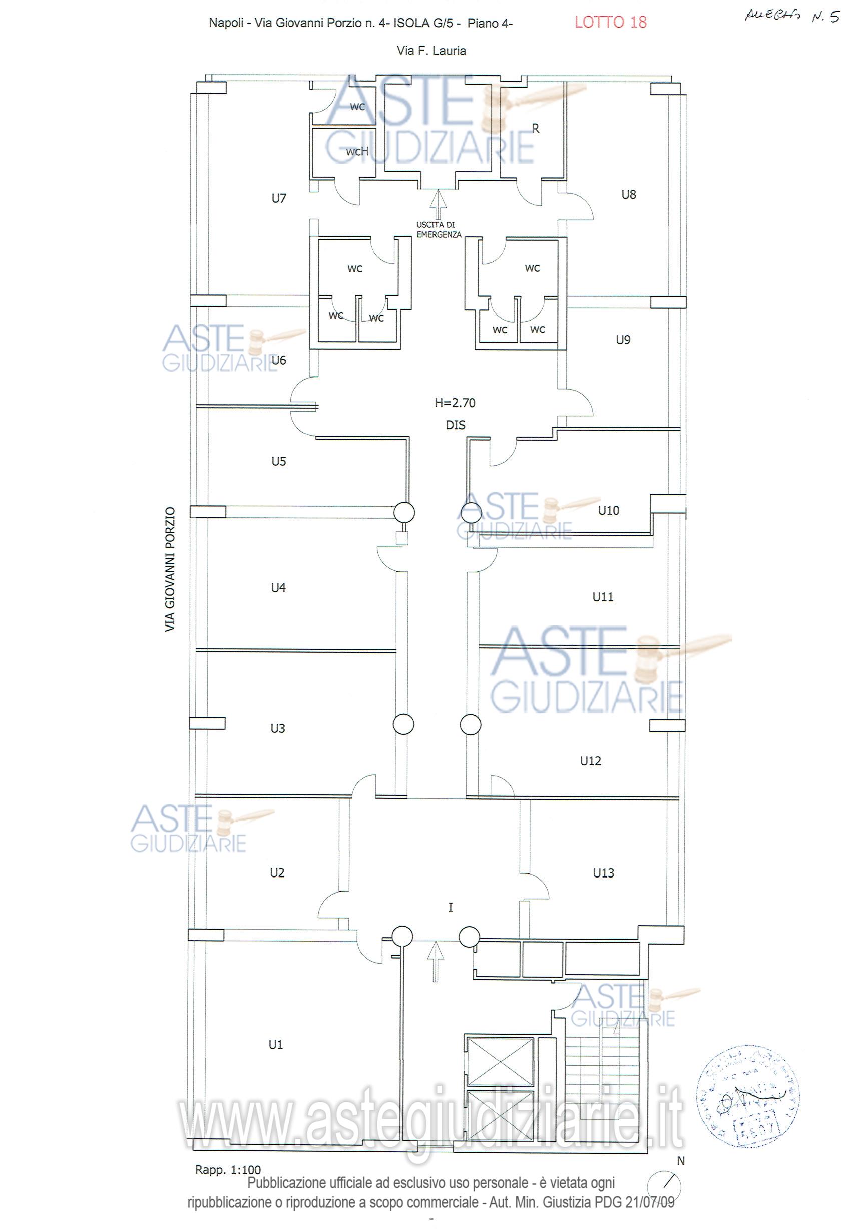 Vendita in attesa dell'emissione del nuovo bando d'asta. LOTTO 18: Comune di NAPOLI, Centro Direzionale, Via Giovanni Porzio n.4, Isola G5 LOTTO n. 18: ufficio intero 4°piano, con accesso due ingressi a estremità di due scale, ingresso, uscita di emergenza, disimpegno, corridoio, 13 vani ufficio, 2 blocchi servizi, con antibagno, 2 servizi, altri 2 bagni, di cui uno per portatori handicap e ripostiglio, mq 489,92 c.a. Occupato senza titolo come palestra e centro estetico. Ultimo prezzo base € 450.141,00 (offerta minima € 337.606,00). Professionista delegato alla vendita Avv. Maria Angela Zaccagnino - Email "avv.mzaccagnino@gmail.com"; Cell. 3387065811; Tel. 081422477. Custode Giudiziario Avv. Maria Angela Zaccagnino - Email "avv.mzaccagnino@gmail.com"; Cell. 3387065811; Tel. 081422477. Rif. Tribunale di Napoli - Esecuzione immobiliare post legge 80 n. 201/2013