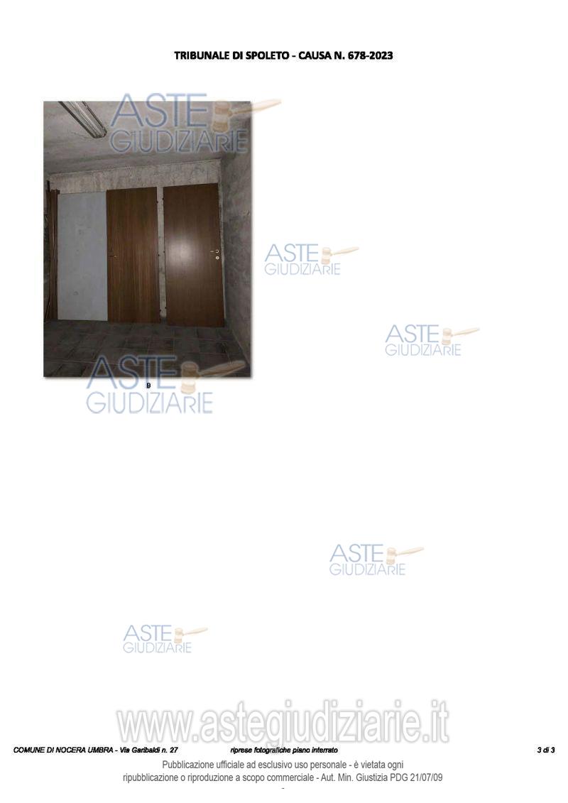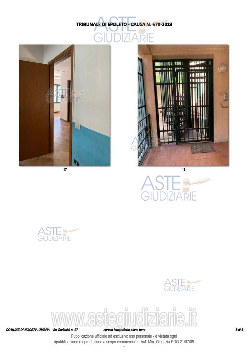 Vendita in attesa dell'emissione del nuovo bando d'asta. LOTTO UNICO: NOCERA UMBRA (PG) VIA GARIBALDI N. 27. Ultimo prezzo base € 132.256,00 (offerta minima € 99.192,00). Giudice Federico Falfari. Professionista delegato alla vendita Avv. Arianna Nalli - Email "ariannanalli@hotmail.it"; Tel. 0742715219. Custode Giudiziario Ivg Perugia - Email "visite@ivgumbria.com"; Tel. 0755913525. Rif. Tribunale di Spoleto - Contenzioso civile n. 678/2023