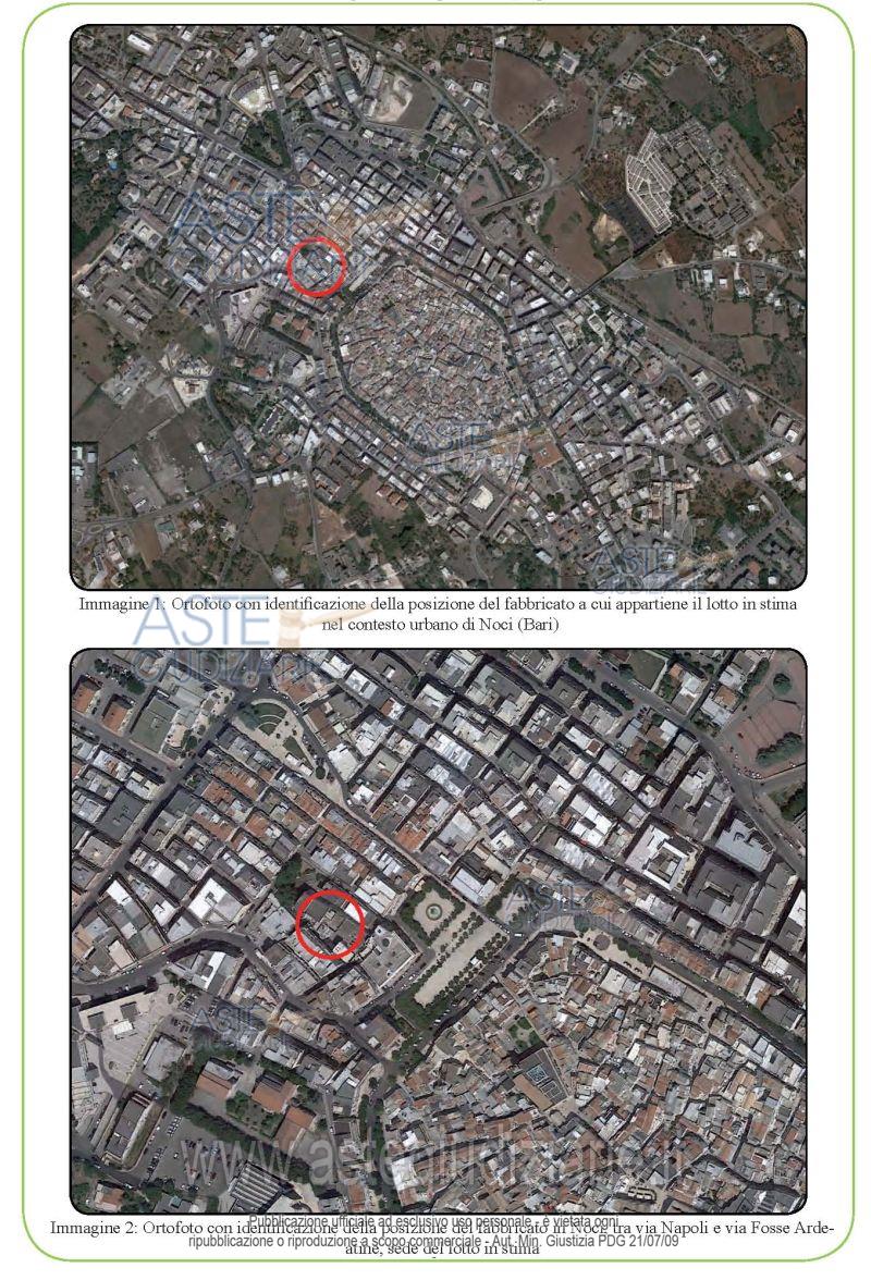 Vendita all'asta Senza incanto, con gara telematica asincrona - LOTTO 55: Diritti di piena proprietà del locale ad uso ufficio sito in Noci (BA) piano 1, con accesso da via Napoli civ. 5/B, vani 6, con superficie catastale di 127 mq, facente parte di fabbricato condominiale.L’immobile attualmente è così composto: 5 vani, un disimpegno, un cucinino, due bagni e due verande. Prezzo base € 103.400,00 (offerta minima € 77.550,00). Data inizio operazioni di vendita: 05/05/2026 ore 10:00. Giudice Dott. Giuseppe Marseglia.