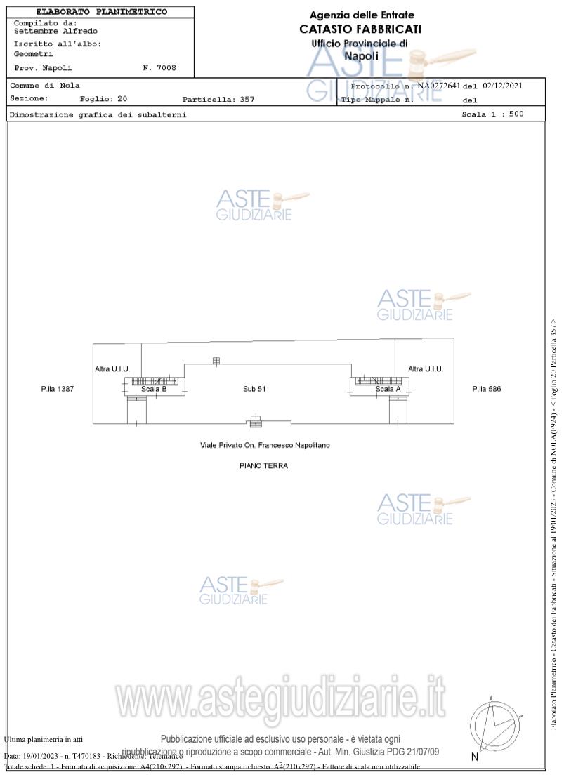 Vendita all'asta Senza incanto, con gara telematica asincrona - LOTTO 2: Piena ed intera proprietà di porzione immobiliare facente parte del corpo di fabbrica sito nel Comune di Nola al Viale Onorevole Francesco Napolitano civici 10-12-14. La porzione immobiliare pignorata è posta al piano rialzato dell’edificio ed è servita dalla scala A e dalla scala B. L’immobile inoltre ha anche accesso indipendente, direttamente dalla strada, in corrispondenza del civico 12, con rampa esclusiva nonché accesso secondario dalla porta posta sul retro confinante con area condominiale. Prezzo base € 515.000,00 (offerta minima € 386.250,00). Data inizio operazioni di vendita: 14/10/2025 ore 17:00. Professionista delegato alla vendita Dott. Salvatore Russo - Email "studiorusso4@gmail.com"; Tel. 0818031586. Custode Giudiziario Dott. Salvatore Russo - Email "studiorusso4@gmail.com"; Tel. 0818031586. Rif. Tribunale di Nola - Esecuzione immobiliare post legge 80 n. 103/2022