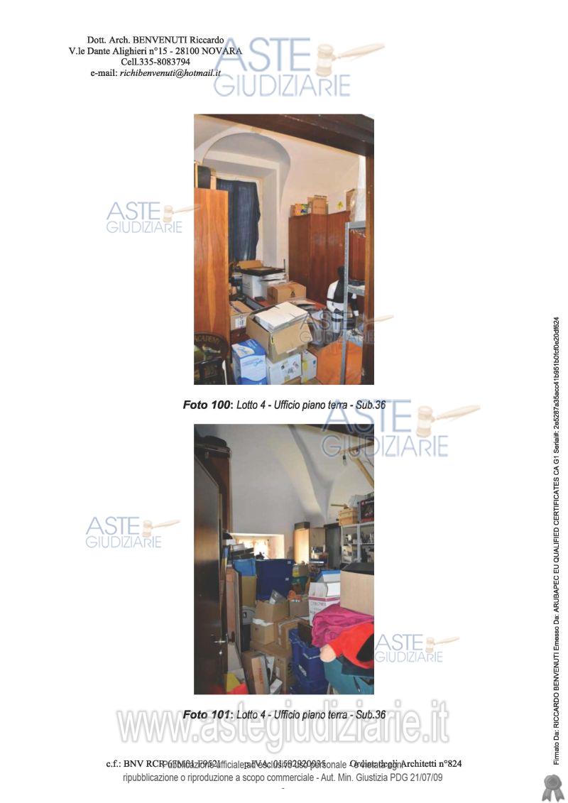 Vendita all'asta Senza incanto, con gara telematica asincrona - LOTTO 4: In palazzo articolato in più corpi di fabbrica, composto da tre piani fuori terra, piena proprietà per la quota di 1000/1000 di ufficio sita al piano terra articolato nei seguenti locali: ingresso/attesa, due studi e servizio igienico. Prezzo base € 109.500,00 (offerta minima € 82.125,00). Data inizio operazioni di vendita: 20/05/2026 ore 10:30. Professionista delegato alla vendita Dott. Veronica Bosi - Email "infoaste@cegnovara.it"; Tel. 0321397588. Custode Giudiziario Ifir Piemonte Ivg Srl - Email "richiestevisite.novara@ivgpiemonte.it"; Tel. 0321628676. Rif. Tribunale di Novara - Espropriazione immobiliare (cartabia) n. 116/2024