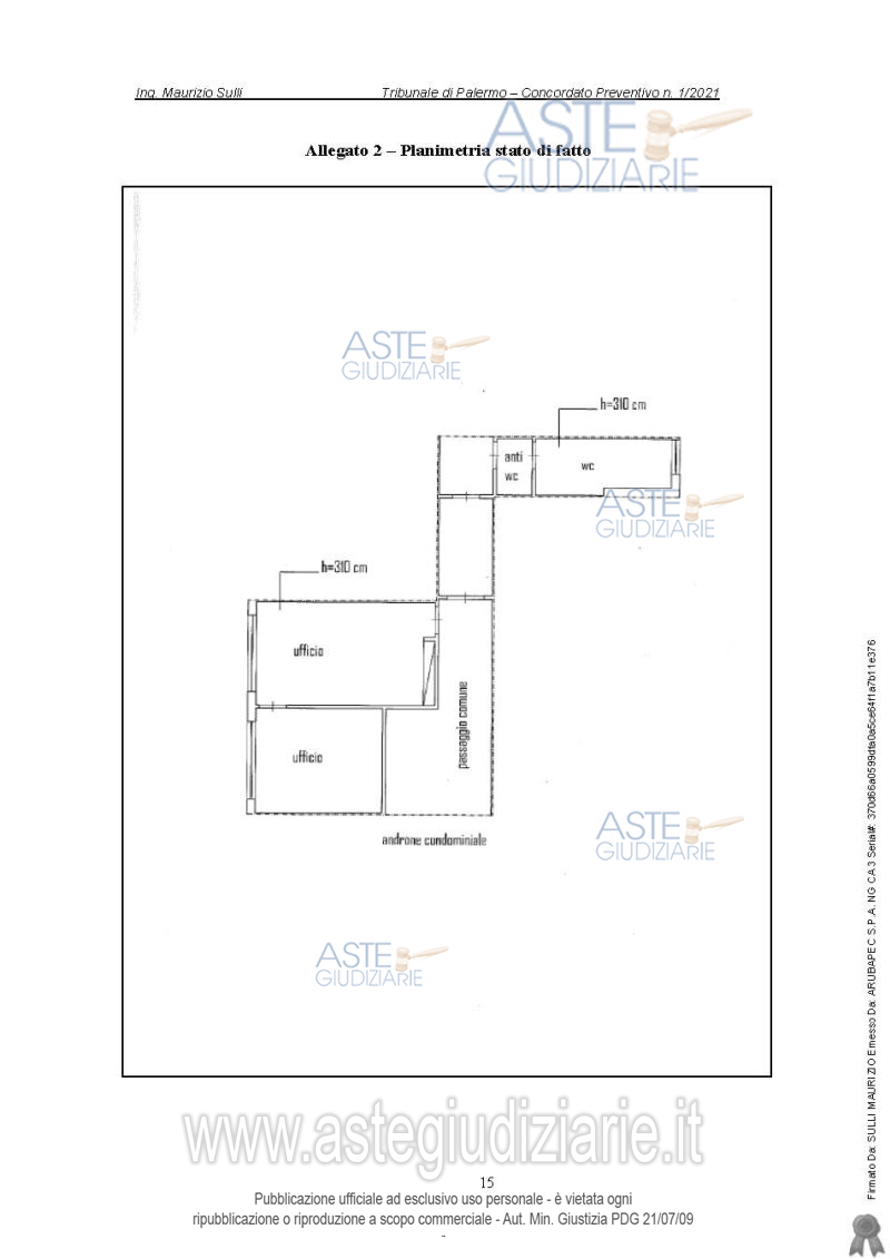 Vendita all'asta Senza incanto - LOTTO 2: Ufficio sito in Palermo, Piazza Goffredo Mameli n. 1, piano rialzato composto da n. 2 ambienti muniti di finestre con affaccio su Via C. Nigra, anti-wc e w.c.d. con finestra su prospetto laterale. Si evidenzia che il w.c.d. non è direttamente accessibile da due vani prima richiamati e per raggiungerlo occorre percorrere un passaggio comune ad altre unità immobiliari. Distinta al C.F. al foglio 44, particella 533, sub 40, categoria A/10, consistenza 2,5 vani . Prezzo base € 37.500,00 (offerta minima € 37.500,00). Data vendita 13/01/2026 ore 10:00. Rif. Tribunale di Palermo - Nuovo concordato preventivo n. 1/2021
