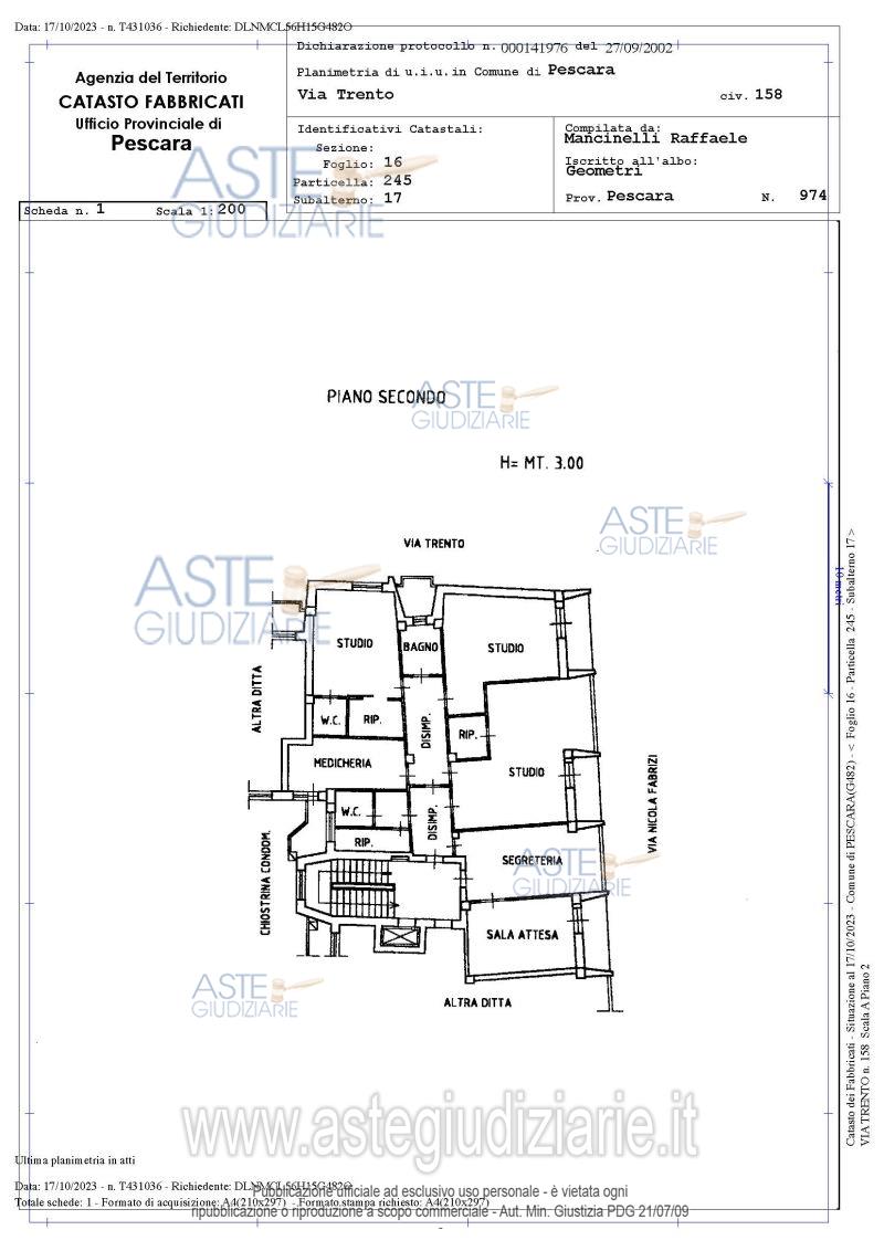 Vendita all'asta Senza incanto, con gara telematica asincrona - LOTTO UNICO: Intera proprietà (1/1) di appartamento ad uso ufficio. Prezzo base € 408.979,50 (offerta minima € 306.734,63). Data inizio operazioni di vendita: 11/11/2025 ore 09:00. Professionista delegato alla vendita Avv. Luca Palma - Email "avv.lucapalma@virgilio.it"; Tel. 085690578. Custode Giudiziario Avv. Luca Palma - Email "avv.lucapalma@virgilio.it"; Tel. 085690578. Rif. Tribunale di Pescara - Esecuzione immobiliare post legge 80 n. 23/2023