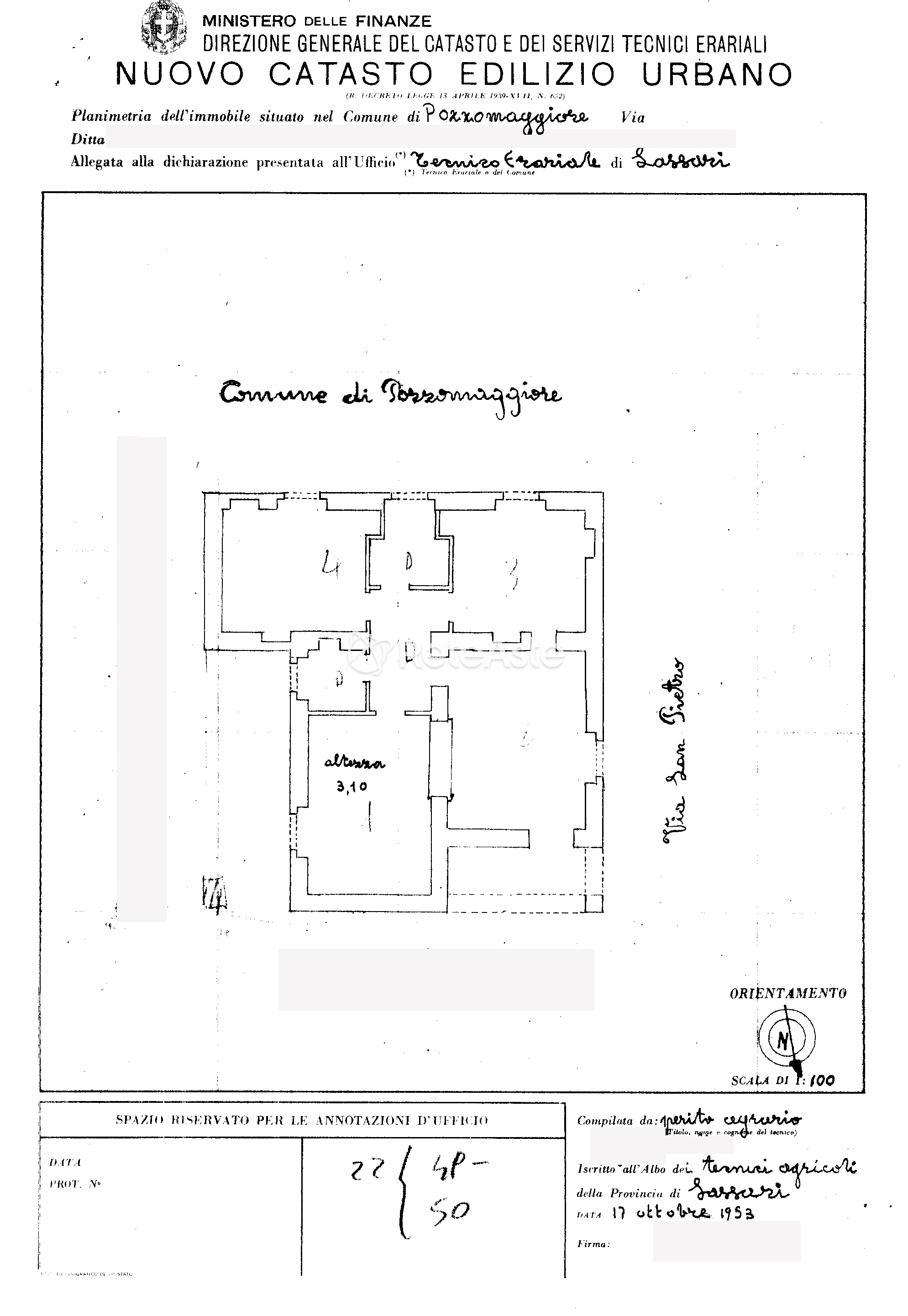 Edificato nei primi anni '50, l'immobile di vacchia cotruzione è realizzato con struttura portante in muratura ordinaria.