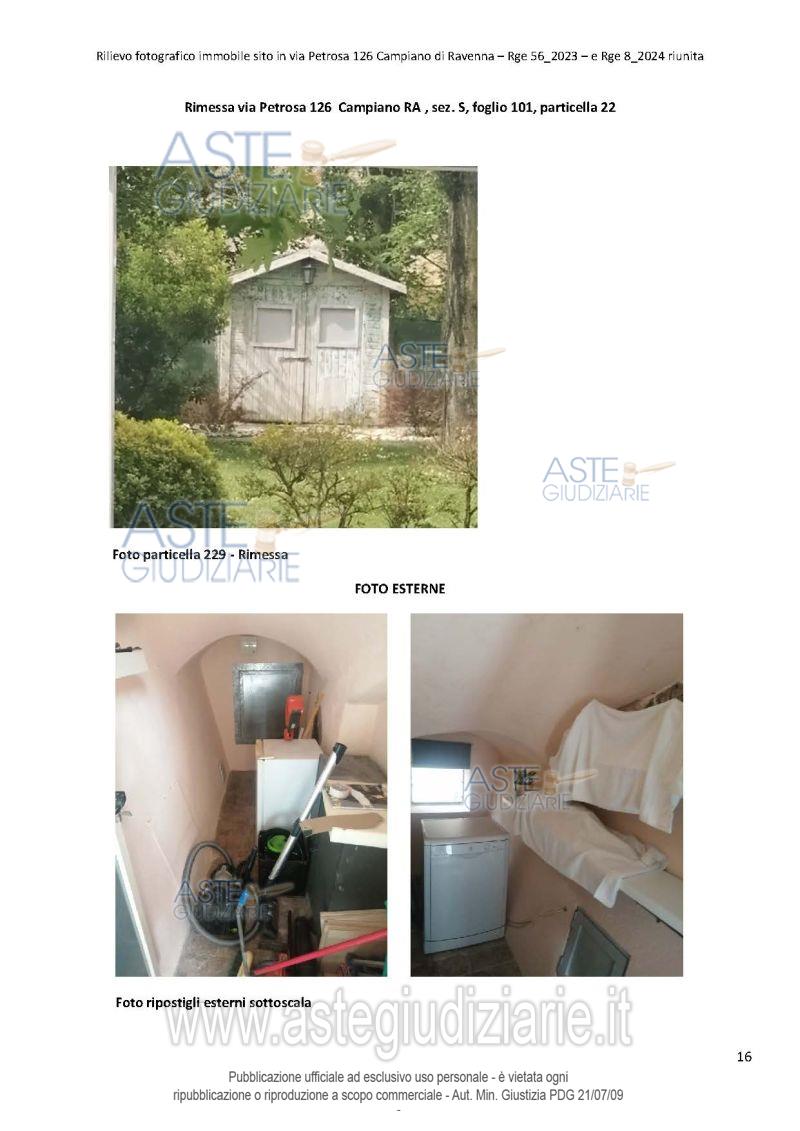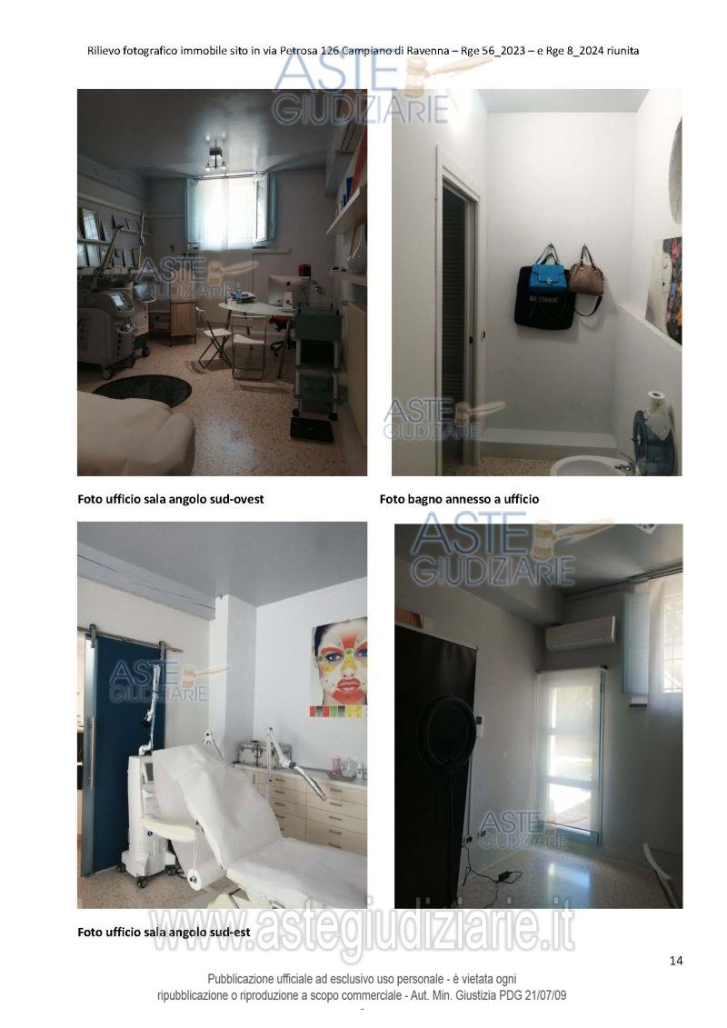 Vendita all'asta Senza incanto, con gara telematica asincrona - LOTTO 4: Porzione del complesso immobiliare denominato "Villa Ginanni Corradini" sviluppato su tre piani fuori terra all'interno di un parco di Ha 1.00.24, sito in Comune di Ravenna, frazione Campiano, Via Petrosa n. 126, costituita da ufficio, cantina, 2 posti auto esterni, rimessa distaccata con corte esclusiva. Prezzo base € 46.000,00 (offerta minima € 34.500,00). Data inizio operazioni di vendita: 10/03/2026 ore 10:00. Giudice Samuele Labanca. Professionista delegato alla vendita Not. Paolo Castellari - Email "associazionenotairavenna@facilepec.com". Custode Giudiziario Not. Paolo Castellari - Email "astenotai@associazionenotai.it"; Cell. 3779415717; Tel. 0544219977. Rif. Tribunale di Ravenna - Esecuzione immobiliare post legge 80 n. 56/2023