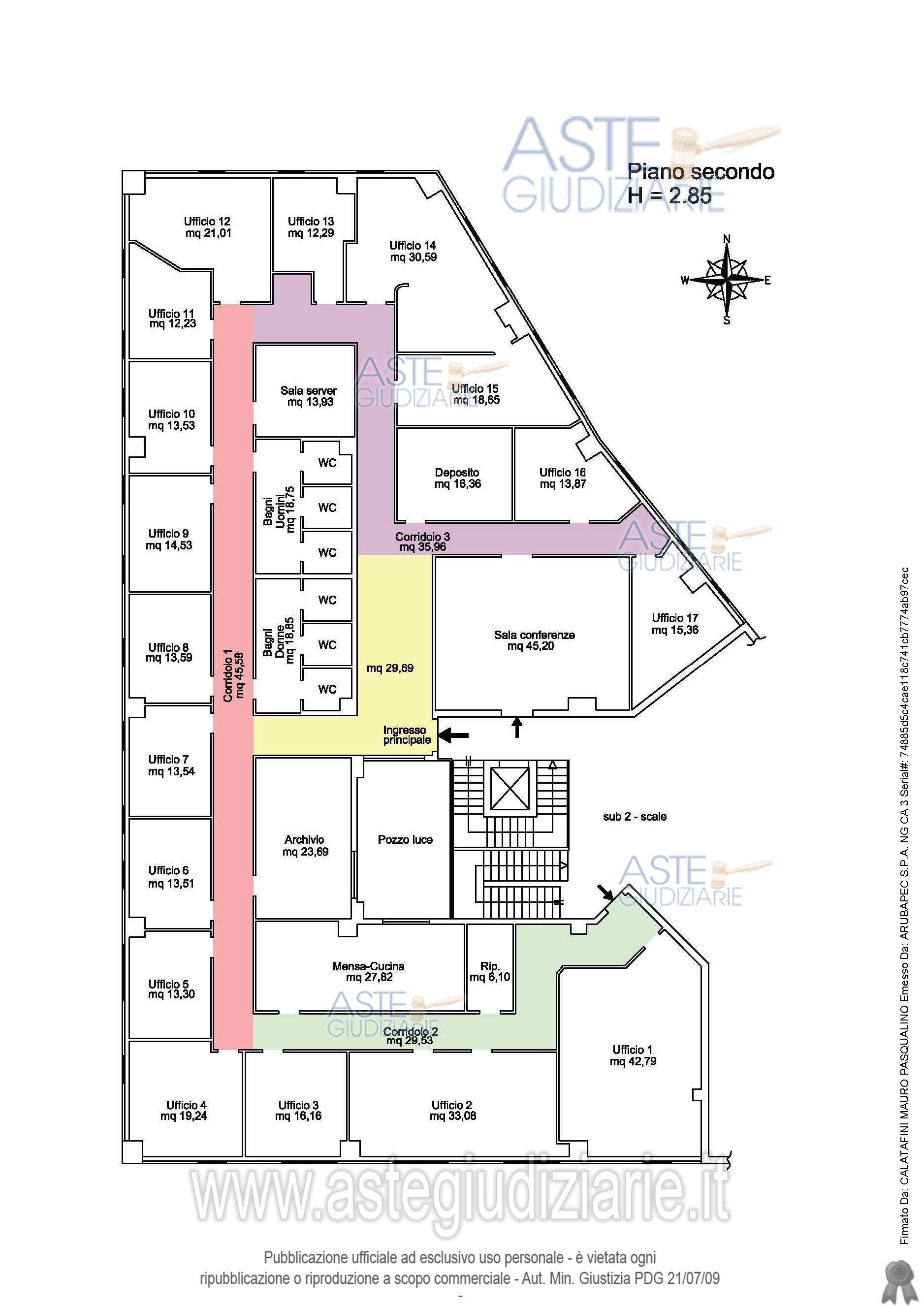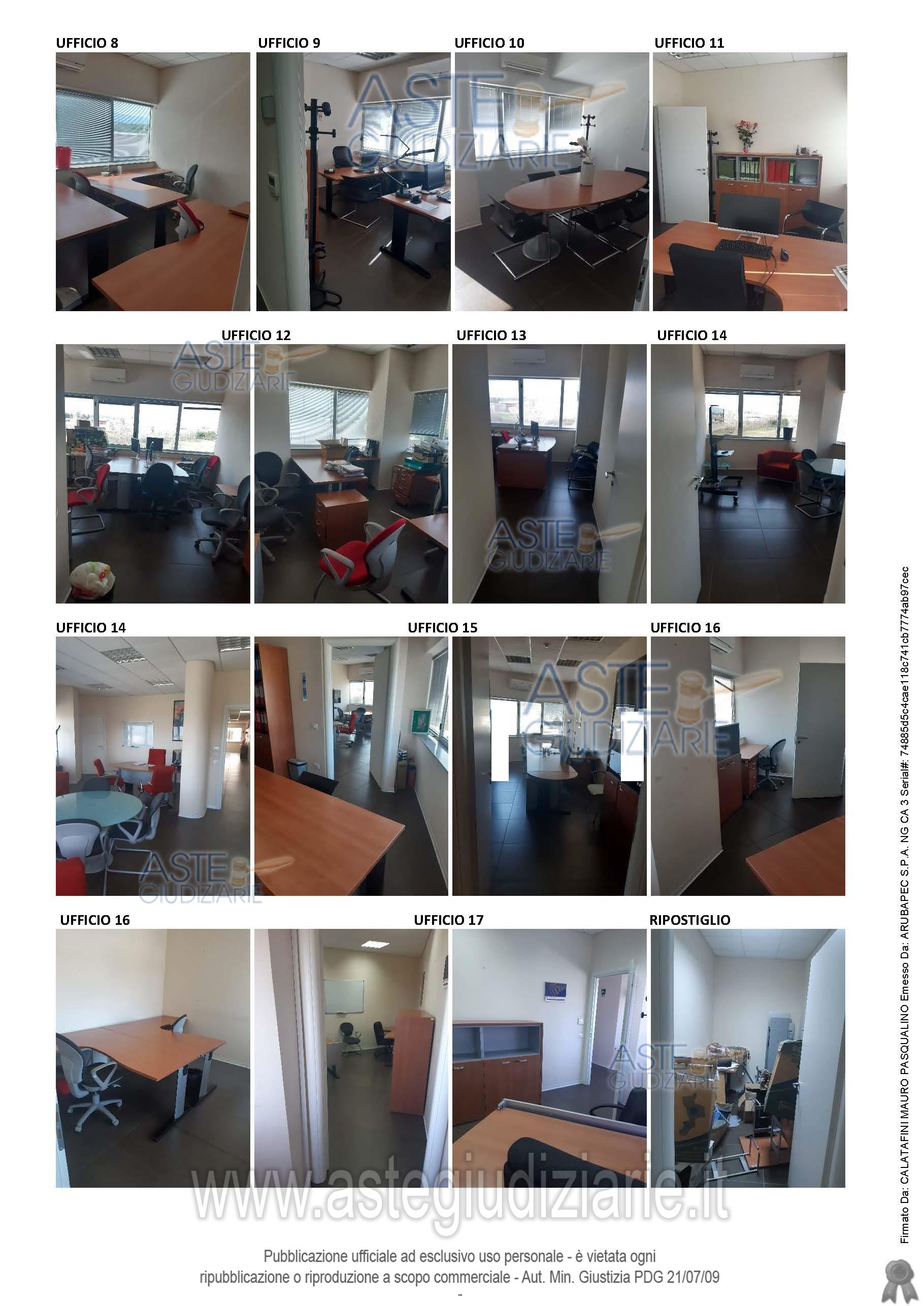 Vendita all'asta Senza incanto, con gara telematica sincrona mista - LOTTO UNICO: Unita immobiliare al secondo piano di un fabbricato di piacevole aspetto, adibito a uffici e locali a servizio del settore terziario. E' costituito da 17 uffici di varia grandezza, ripostiglio, locale adibito a mensa e cucina, archivio, bagni, sala server, deposito e sala conferenze. La superficie calpestabile del manufatto è pari a mq 628,73 mentre la superficie totale consta di mq 696,48. Prezzo base € 543.336,73 (offerta minima € 407.502,55). Data vendita 22/07/2026 ore 10:30. Giudice: Dott. Assunta Gioia.