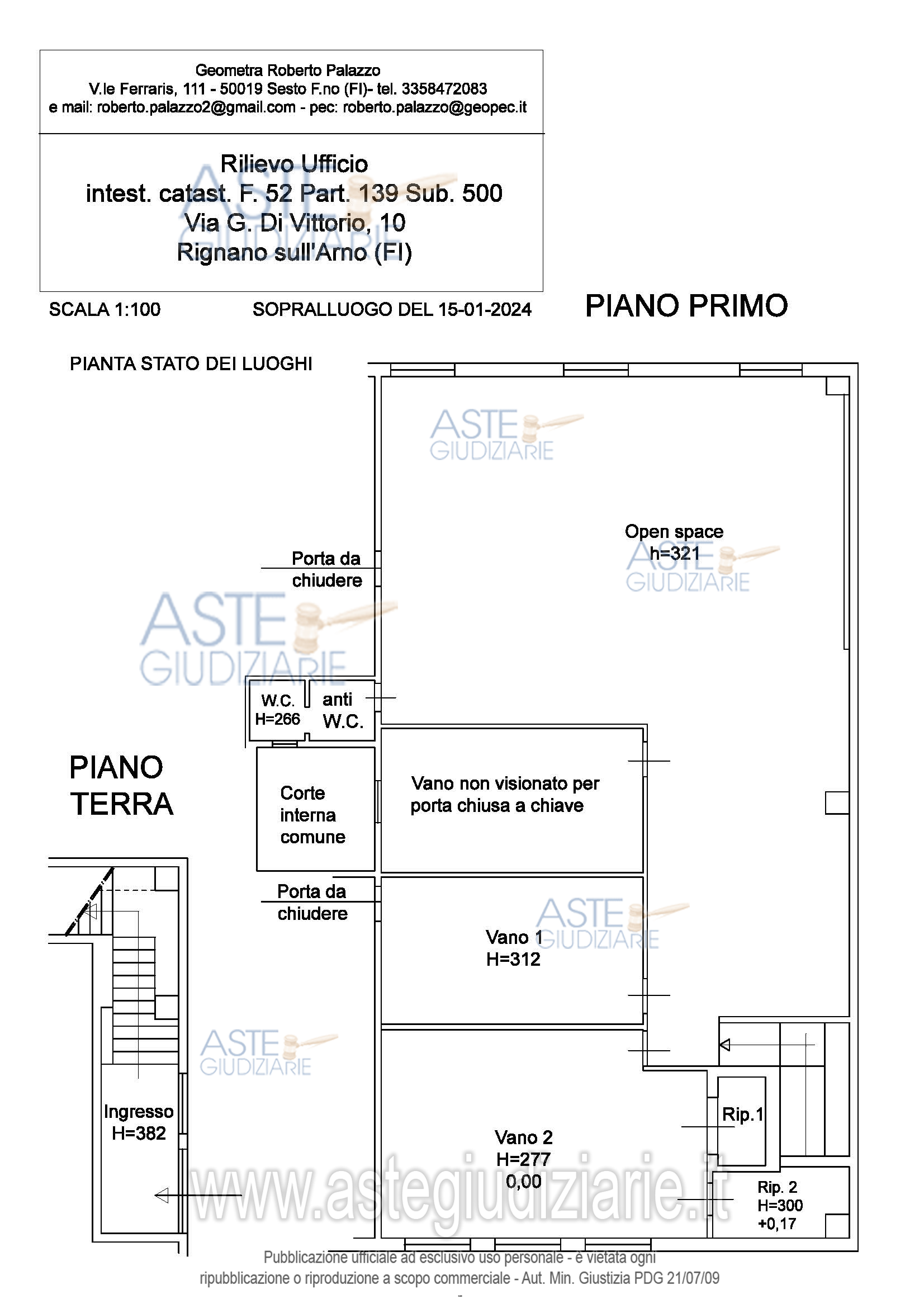 Vendita all'asta Senza incanto, con gara telematica sincrona - LOTTO UNICO: Unità immobiliare ad uso ufficio, facente parte di un più ampio complesso immobiliare, composta al piano terreno da un ingresso e scala di accesso e al piano primo da open space, tre vani, due ripostigli e un servizio igienico con antibagno, oltre comproprietà pro-quota delle parti comuni. Prezzo base € 62.220,00 (offerta minima € 46.665,00). Data vendita 23/06/2026 ore 16:00. Giudice Giovanna Mazza. Professionista delegato alla vendita Avv. Carlo Florio. Custode Giudiziario Istituto Vendite Giudiziarie Di Firenze - Email "prenota.fi@isveg.it"; Tel. 0552340830. Rif. Tribunale di Firenze - Espropriazione immobiliare (cartabia) n. 183/2023