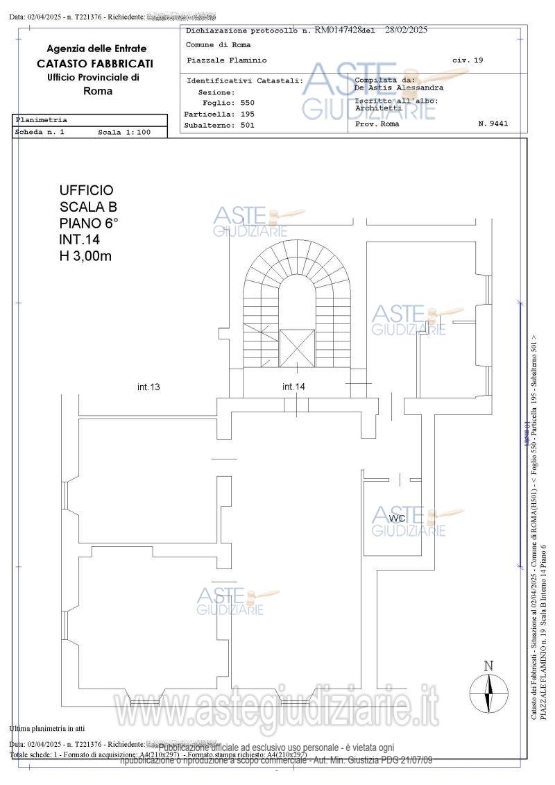 Vendita all'asta Senza incanto, con gara telematica asincrona - LOTTO 1: Appartamento a destinazione ufficio, sito in Comune di Roma, Piazzale Flaminio n. 19, piano quinto (sesto catastale), scala B, interno 14. Con doppio ingresso posto sul vano scala provvisto di ascensore, si compone di sei locali ed un servizio igienico per complessivi mq. 179,00 circa. Prezzo base € 940.000,00 (offerta minima € 705.000,00). Data inizio operazioni di vendita: 27/11/2025 ore 10:00. Giudice Lauropoli. Professionista delegato alla vendita Avv. Elena Fraternali Orcioni. Custode Giudiziario Ivg Roma Srl - Email "pvp.richiestavisita@ivgroma.it". Rif. Tribunale di Roma - Esecuzione immobiliare post legge 80 n. 1206/2018