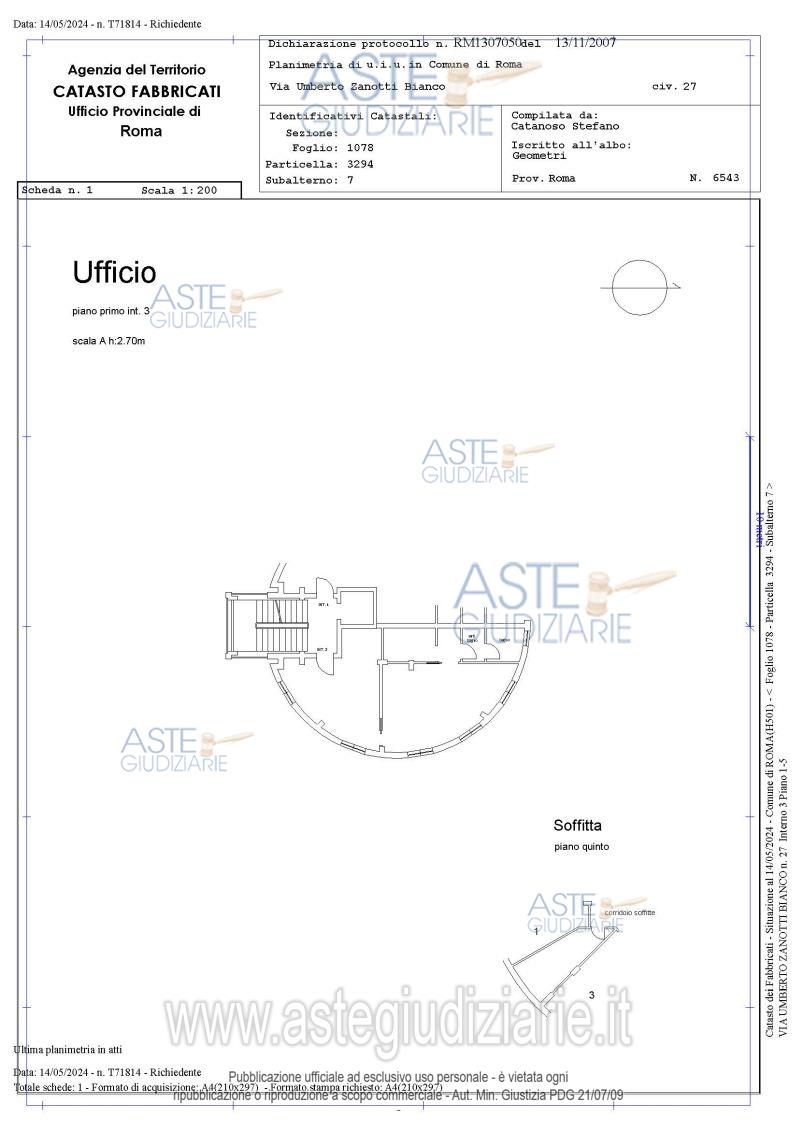 Vendita all'asta Senza incanto, con gara telematica asincrona - LOTTO 3: Quota pari a 1/1 del diritto di proprietà superficiaria per 99 anni, decorrenti dalla data di stipula della Convenzione con il Comune di Roma su a)Ufficio sito in Roma, via Umberto Zanotti Bianco 27, piano primo, interno 3, mq. 69, con soffitta, piano 5, interno 2. Identificato al NCEU al fogl.1078, part. 3294, sub. 7, cat A10, rend. € 2.566,79 b)posto auto sito in Roma, Via Zanotti Bianco n. 29, piano T, interno 16. Identificato al NCEU al fogl. n. 1078, part. 3294, sub. 39, cat. C6, mq 13, rend. € 28,20. Prezzo base € 53.760,00 (offerta minima € 40.320,00). Data inizio operazioni di vendita: 18/12/2025 ore 12:00. Giudice Dott. Romolo Ciufolini. Professionista delegato alla vendita Avv. Valentina Rombola'. Custode Giudiziario Ivg Di Roma Srl - Email "Pvp@visiteivgroma.it"; Tel. 0689569801. Rif. Tribunale di Roma - Espropriazione immobiliare (cartabia) n. 1056/2023