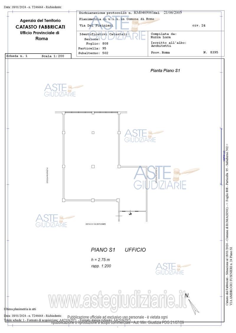 Vendita all'asta Senza incanto, con gara telematica asincrona - LOTTO UNICO: Quota pari a 1/1 del diritto di piena proprietà su locale con destinazione ufficio sito in Roma (RM), Via Ambrogio Fusinieri n.24 piano S1, composto da un unico ampio locale privo di servizi igienici, per complessivi mq. 200,00 superficie lorda e mq. 200,00 superficie convenzionale complessiva. Prezzo base € 89.600,00 (offerta minima € 67.200,00). Data inizio operazioni di vendita: 17/12/2025 ore 14:00. Giudice Dott. Fernando Scolaro. Professionista delegato alla vendita Avv. Francesca Giambelluca. Custode Giudiziario I.V.G Di Roma S.R.L. Istituto Vendite Giudiziarie - Email "pubblicita@ivgroma.it"; Tel. 06 83751500. Rif. Tribunale di Roma - Esecuzione immobiliare post legge 80 n. 64/2023