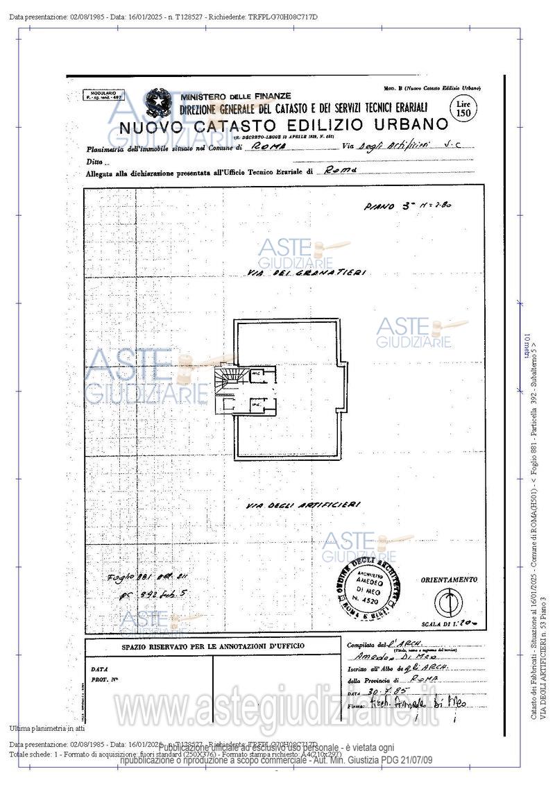 Vendita all'asta Senza incanto, con gara telematica asincrona - LOTTO UNICO: Diritto intera proprietà su edificio sito in Roma, via degli Artificieri n. 53, di quattro piani fuori terra, un piano seminterrato e due piani interrati, costituito da due corpi principali a pianta rettangolare intersecati a croce, con circostante piazzale comune privato recintato che si sviluppa su due diverse altezze tra loro collegate da una scala pedonale. Superficie totale convenzionale di mq. 1673 circa. Stato occupazione: occupato da terzi senza titolo opponibile al fallimento, in corso liberazione. Prezzo base € 2.745.000,00 (offerta minima € 2.058.750,00). Data inizio operazioni di vendita: 12/05/2026 ore 14:00. Giudice Dott. Claudio Tedeschi. Curatore Avv. Sandra D'amico - Email "sandra.damico@libero.it"; Tel. 066833687. Rif. Tribunale di Roma - Fallimentare (nuovo rito) n. 29/2020