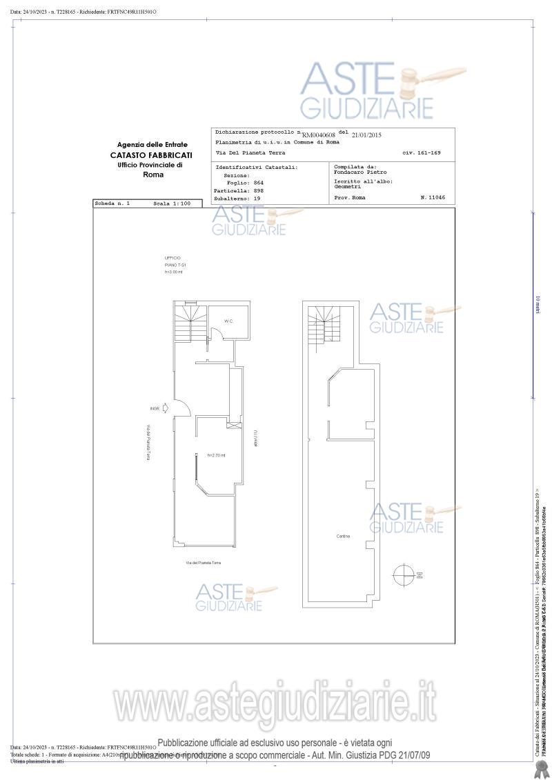 Vendita all'asta Senza incanto, con gara telematica asincrona - LOTTO UNICO: Quota pari a 1/1 del diritto di PIENA PROPRIETA’ del compendio sito in Roma, VIA DEL PIANETA TERRA 161-169: - appartamento ad uso ufficio, composto da piano terra e piano interrato collegati traloro da scala interna, distinto con l'interno N.2, con più vetrine, sotto i portici del fabbricato, si trova in una zona ben servita con la presenza di parcheggi sia frontali che in un grande piazzale (P.ZZA DEI PIANETI) adiacente, presenza di supermercati e altri locali commerciali. Prezzo base € 124.800,00 (offerta minima € 93.600,00). Data inizio operazioni di vendita: 04/06/2026 ore 14:00. Giudice Liverani. Professionista delegato alla vendita Avv. Valentina Fabrizi. Custode Giudiziario Ivg Di Roma Srl - Email "pvp@visiteivgroma.it"; Cell. 0689569801. Rif. Tribunale di Roma - Esecuzione immobiliare post legge 80 n. 318/2022