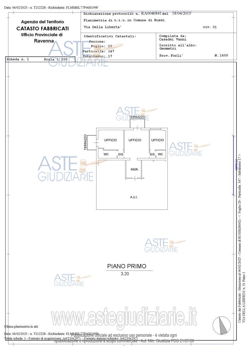 Vendita all'asta Senza incanto, con gara telematica asincrona - LOTTO 1: Piena proprietà relativa ad unità ad uso ufficio al piano primo di fabbricato plurifamiliare. Superficie catastale titale di ca mq 72,00. Occupato con titolo opponibile alla procedura. Prezzo base € 40.000,00 (offerta minima € 30.000,00). Data inizio operazioni di vendita: 28/11/2025 ore 09:00. Giudice Samuele Labanca. Professionista delegato alla vendita Avv. Marco Bigari - Email "segreteria@bibax.net"; Tel. 3934393393. Custode Giudiziario Avv. Marco Bigari - Email "segreteria@bibax.net"; Tel. 3934393393. Rif. Tribunale di Ravenna - Esecuzione immobiliare post legge 80 n. 162/2024