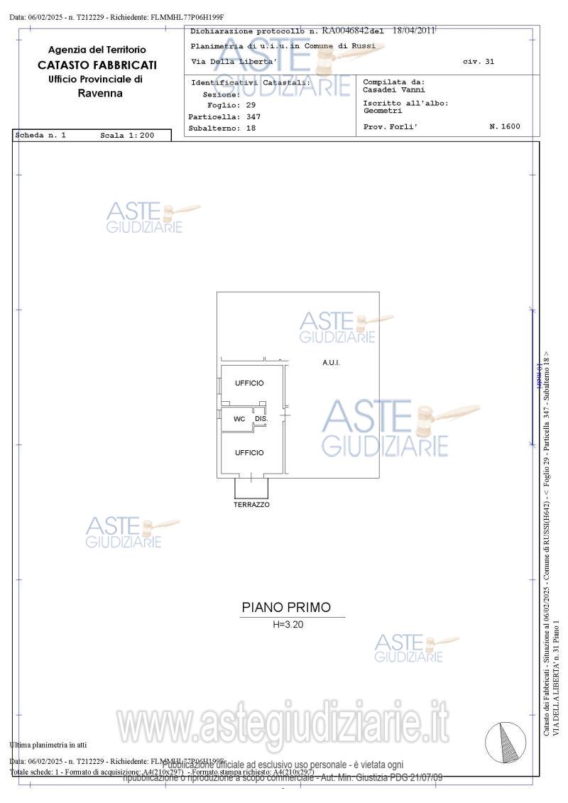 Vendita all'asta Senza incanto, con gara telematica asincrona - LOTTO 2: Piena proprietà relativa ad unità ad uso ufficio al piano primo di fabbricato plurifamiliare. Superficie catastale totale di ca mq 43,00. Occupato con titolo opponibile alla procedura. Prezzo base € 27.000,00 (offerta minima € 20.250,00). Data inizio operazioni di vendita: 28/11/2025 ore 09:30. Giudice Samuele Labanca. Professionista delegato alla vendita Avv. Marco Bigari - Email "segreteria@bibax.net"; Tel. 3934393393. Custode Giudiziario Avv. Marco Bigari - Email "segreteria@bibax.net"; Tel. 3934393393. Rif. Tribunale di Ravenna - Esecuzione immobiliare post legge 80 n. 162/2024
