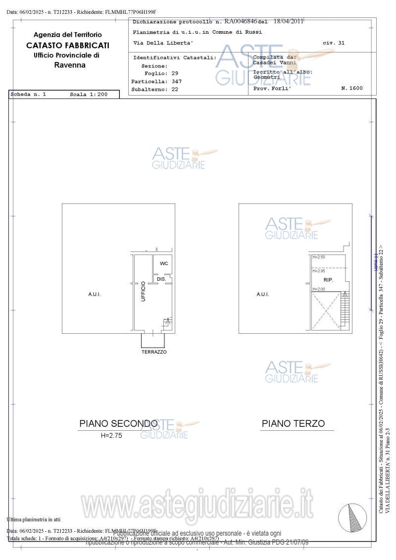 Vendita all'asta Senza incanto, con gara telematica asincrona - LOTTO 6: Piena proprietà relativa ad unità ad uso ufficio al piano secondo e terzo di fabbricato plurifamiliare. Superficie catastale totale di ca mq 46,00. Occupato con titolo opponibile alla procedura. Prezzo base € 32.000,00 (offerta minima € 24.000,00). Data inizio operazioni di vendita: 28/11/2025 ore 11:30. Giudice Samuele Labanca. Professionista delegato alla vendita Avv. Marco Bigari - Email "segreteria@bibax.net"; Tel. 3934393393. Custode Giudiziario Avv. Marco Bigari - Email "segreteria@bibax.net"; Tel. 3934393393. Rif. Tribunale di Ravenna - Esecuzione immobiliare post legge 80 n. 162/2024