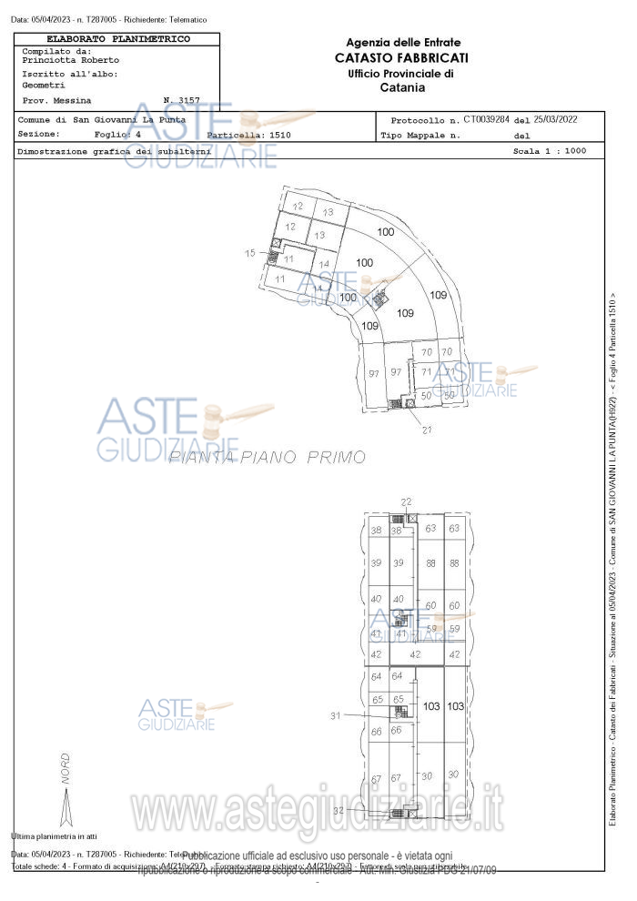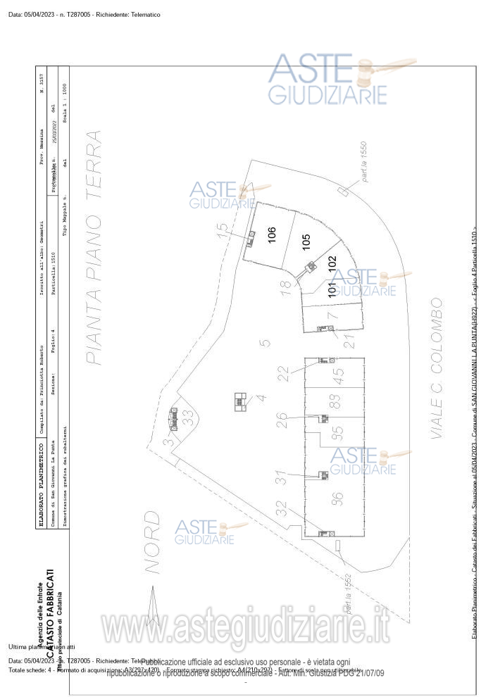 Vendita all'asta Senza incanto, con gara telematica sincrona - LOTTO UNICO: Ufficio sito in San Giovanni La Punta, Viale Cristoforo Colombo s.n., ricompreso nella porzione denominata “Lato Ovest” del complesso immobiliare “Parco commerciale I Portali”, distinta con gli interni 20 e 21, di vani 10. Prezzo base € 213.000,00 (offerta minima € 159.750,00). Data vendita 11/11/2025 ore 09:00. Giudice Nelly Gaia Mangiameli. Professionista delegato alla vendita Avv. Andrea Battaglia - Email "avv.andreabattaglia@yahoo.it"; Tel. 095375974. Custode Giudiziario Avv. Andrea Battaglia - Email "avv.andreabattaglia@yahoo.it"; Tel. 095375974. Rif. Tribunale di Catania - Esecuzione immobiliare post legge 80 n. 310/2021