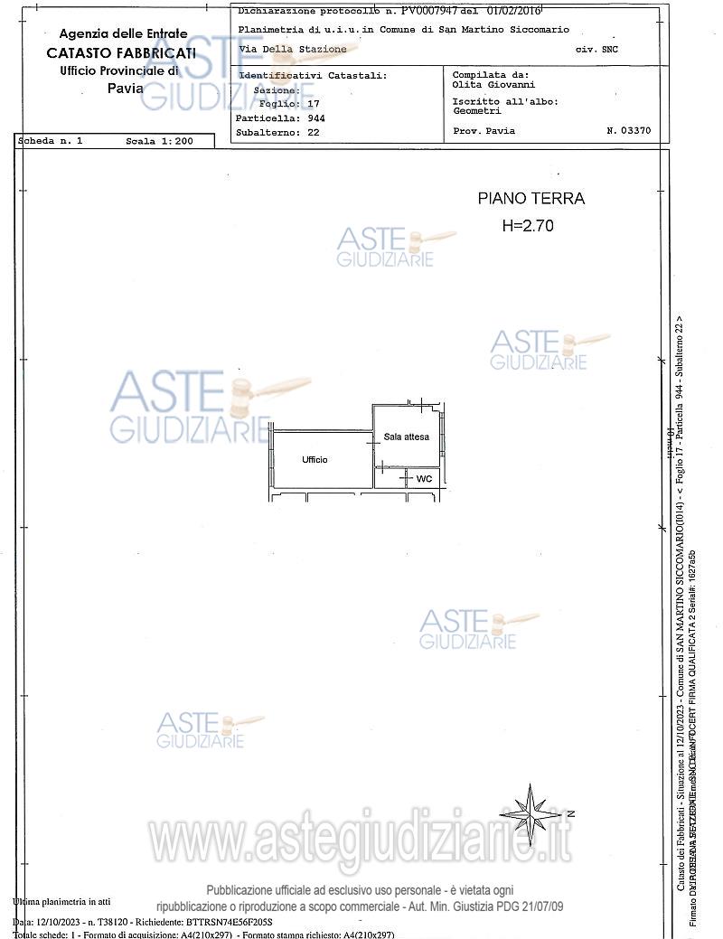 Vendita all'asta Senza incanto, con gara telematica asincrona - LOTTO 22: Unità immobiliare composta da: stato rappresentato nella planimetria catastale: sala d’attesa, ufficio, disimpegno e bagno. stato rilevato. Prezzo base € 31.000,00 (offerta minima € 23.250,00). Data inizio operazioni di vendita: 26/03/2026 ore 15:00. Giudice Dott. Erminio Rizzi. Professionista delegato alla vendita Not. Lorenzo Casella - Email "notai@paviaesecuzioni.it"; Tel. 0382 34728. Custode Giudiziario Istituto Vendite Giudiziarie Pavia - Email "immobiliare@ivgpavialodi.it"; Tel. 0382539013. Rif. Tribunale di Pavia - Espropriazione immobiliare (cartabia) n. 288/2023