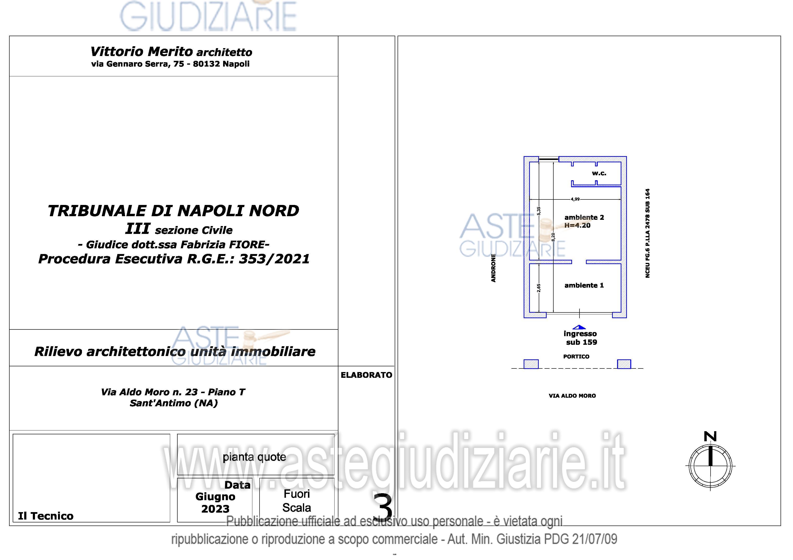Vendita all'asta Senza incanto, con gara telematica asincrona - LOTTO 7: Locale commerciale ubicato nel Comune di Sant’Antimo (Na) a via Aldo Moro n° 53 (catastalmente civ. 23), piano T – “Parco Omissis”, confina a est con bene censito al NCEU del Comune di Sant’Antimo al foglio 6 part. 2478 sub 164, a sud con portico su via Aldo Moro e a ovest con androne condominiale salvo altri, è riportato nel NCEU del NCEU comune di Sant’Antimo, foglio 6, particella 2478, sub. 159, cat. C/1, classe 6, consistenza 42 mq, sup. cat. 47 mq, rendita € 976,10 – via Aldo Moro n° 23 - piano T. Prezzo base € 42.000,00 (offerta minima € 31.500,00). Data inizio operazioni di vendita: 27/11/2025 ore 16:00. Custode Giudiziario Dott. Francesco Russo - Email "studiocasillorusso@libero.it"; Tel. 0815404454. Rif. Tribunale di Napoli Nord - Esecuzione immobiliare post legge 80 n. 353/2021