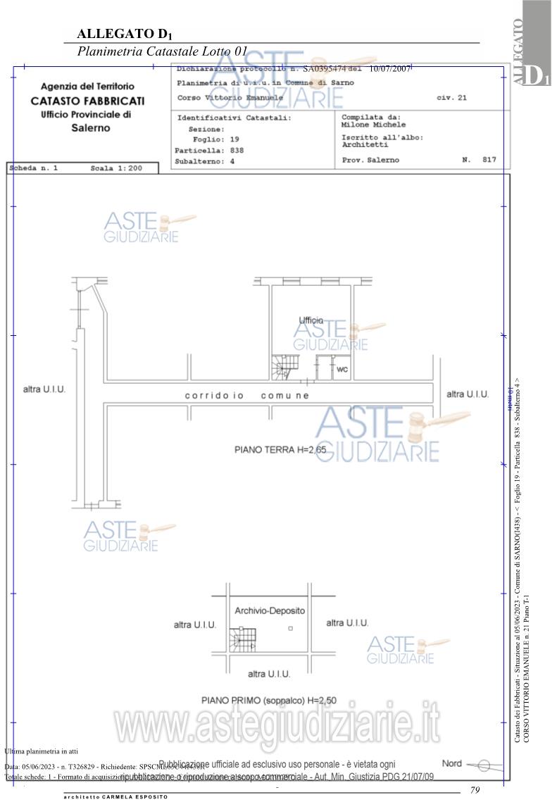 Vendita all'asta Senza incanto, con gara telematica asincrona - LOTTO UNICO: Diritto di piena proprietà del locale adibito ad ufficio. Prezzo base € 32.642,96 (offerta minima € 24.482,21). Data inizio operazioni di vendita: 18/11/2025 ore 18:00. Professionista delegato alla vendita Avv. Nicola Acanfora - Email "avvacanforanicola@gmail.com"; Cell. 3920825441; Tel. 08118239400. Custode Giudiziario Avv. Nicola Acanfora - Email "avvacanforanicola@gmail.com"; Cell. 3920825441; Tel. 08118239400. Rif. Tribunale di Nocera Inferiore - Esecuzione immobiliare post legge 80 n. 155/2022