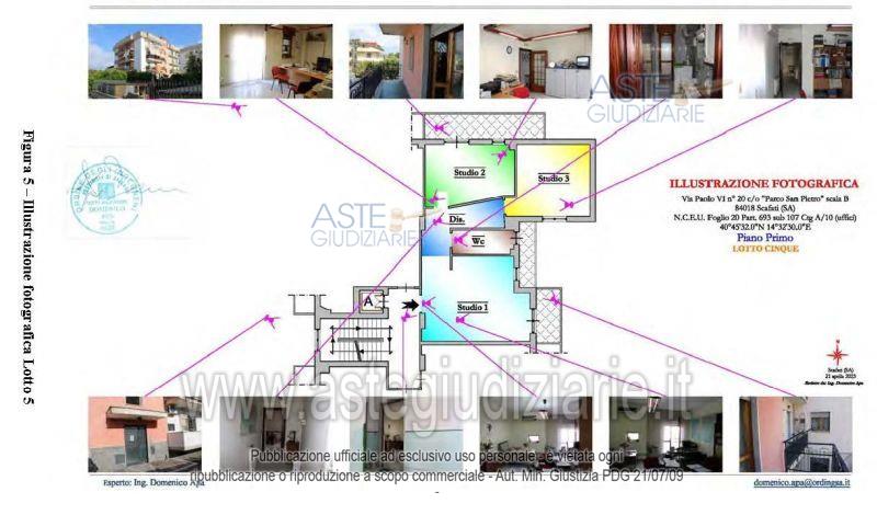 Vendita all'asta Senza incanto, con gara telematica asincrona - LOTTO 5: Piena ed intera proprietà di un Appartamento uso Ufficio in condominio, ubicato in Scafati (SA) via Paolo VI, n.20, scala B, Piano Primo; il bene è composto da tre stanze, un disimpegno, un bagno e tre balconi. L’altezza interna è di mt 2,75, ha una superficie calpestabile pari a mq 62,60 e superficie balconi di mq 16,00. Prezzo base € 118.490,00 (offerta minima € 88.867,50). Data inizio operazioni di vendita: 05/06/2026 ore 16:00. Professionista delegato alla vendita Avv. Giuseppina Parrilli. Custode Giudiziario Avv. Giuseppina Parrilli - Email "g.parrilli@studiolegaleparrilli.it"; Cell. 3393418155. Rif. Tribunale di Nocera Inferiore - Esecuzione immobiliare post legge 80 n. 87/2009