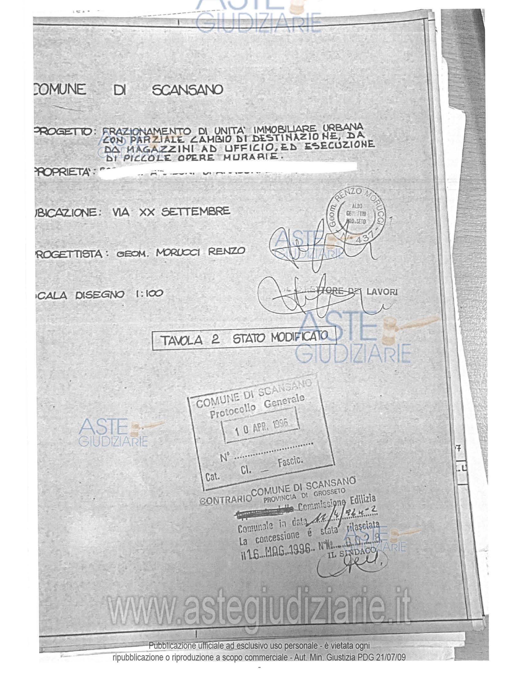 Vendita all'asta Senza incanto, con gara telematica asincrona - LOTTO UNICO: Quota pari a 1/1 del diritto di proprietà di unità immobiliare usoufficio/studio professionale corredata di corte esclusiva sita inScansano (GR), via XX Settembre 25, identificata al Catasto Fabbricati del Comune di Scansano al Foglio n.191, particella n.482, sub. 10,Categoria A/10, classe U, consistenza 5 vani, rendita di € 1.007,09. Prezzo base € 22.542,00 (offerta minima € 16.906,00). Data inizio operazioni di vendita: 17/03/2026 ore 10:30. Professionista delegato alla vendita Avv. Monica Dominici - Email "avv.monicadominici@gmail.com"; Cell. 3393900991. Custode Giudiziario Istituto Vendite Giudiziarie - Email "ivggrosseto@astagiudiziaria.com"; Cell. 0393426598791. Rif. Tribunale di Grosseto - Espropriazione immobiliare (cartabia) n. 85/2023