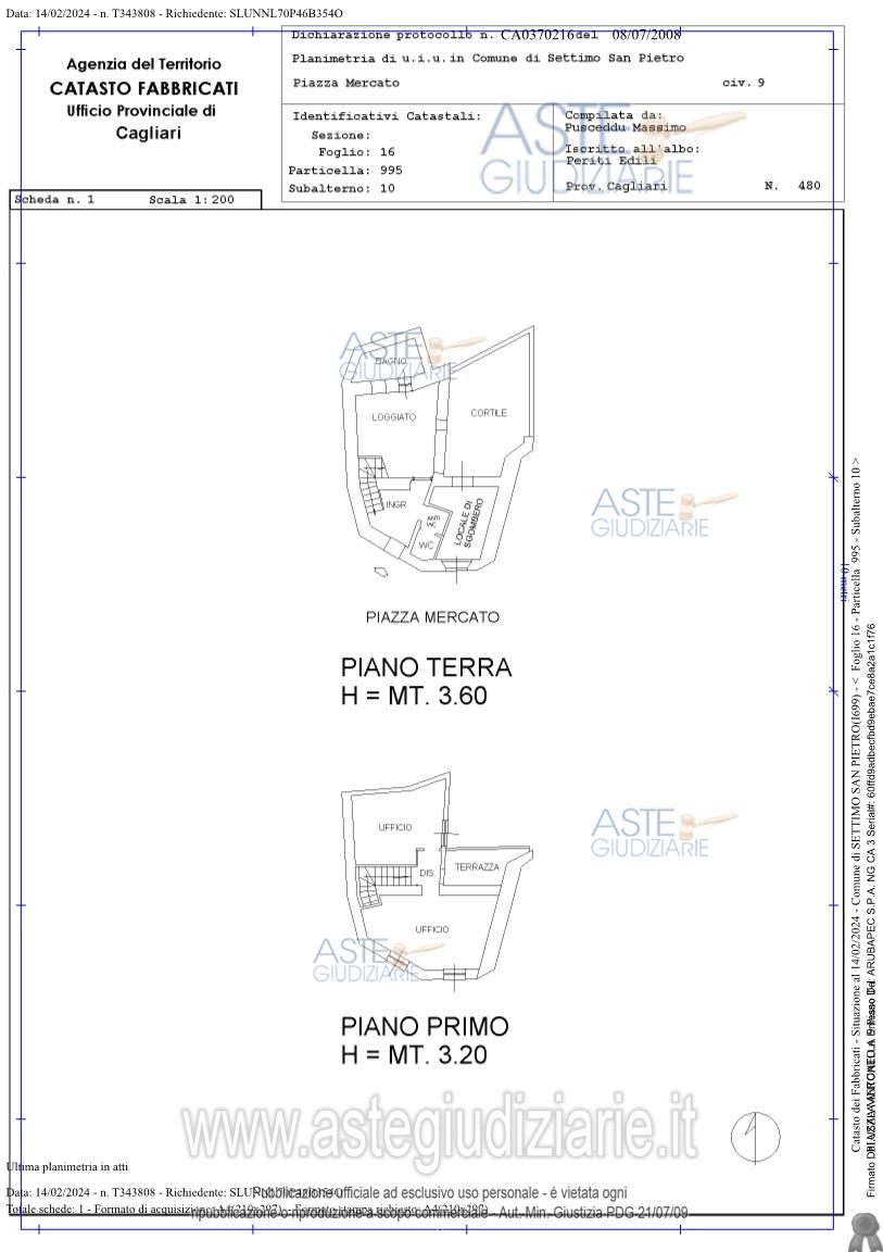 Vendita all'asta Senza incanto, con gara telematica asincrona - LOTTO UNICO: Fabbricato ad uso ufficio ubicato a Settimo San Pietro (CA) - Piazza Mercato 9 composto: al piano terra da ingresso con scala per il piano superiore, loggiato, bagno, locale di sgombero e cortile; al piano primo da due vani, disimpegno e terrazza. Il fabbricato è parte del centro storico comunale ed è privo di parcheggio privato. Prezzo base € 65.824,00 (offerta minima € 49.368,00). Data inizio operazioni di vendita: 14/04/2026 ore 15:00. Professionista delegato alla vendita Avv. Laura Satta - Email "avv.laurasatta@gmail.com"; Tel. 3461498416. Custode Giudiziario Istituto Vendite Giudiziarie - Email "ivg.visiteimmobili@tiscali.it"; Tel. 0702299036. Rif. Tribunale di Cagliari - Esecuzione immobiliare post legge 80 n. 21/2021