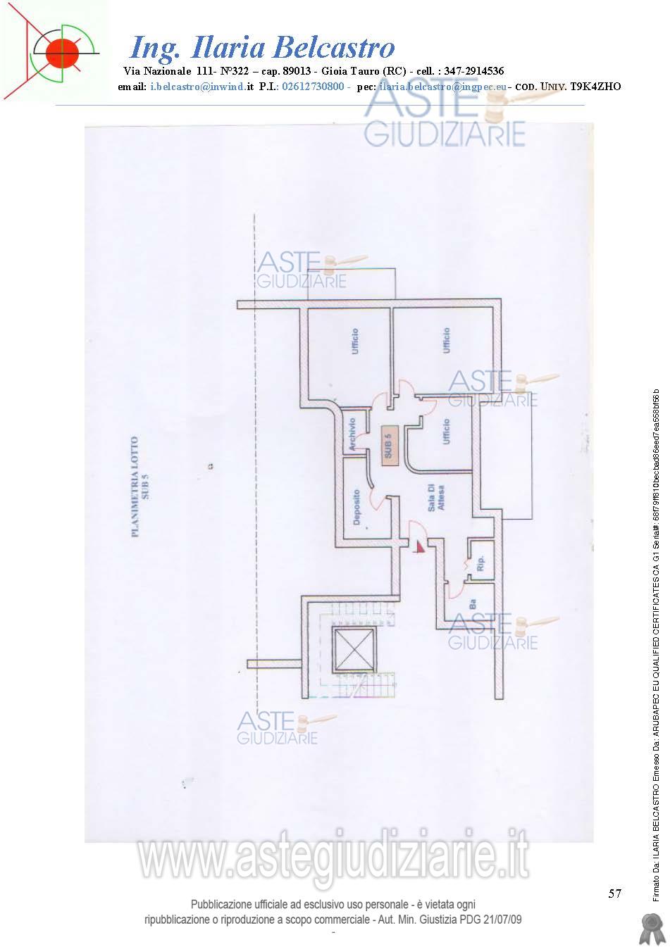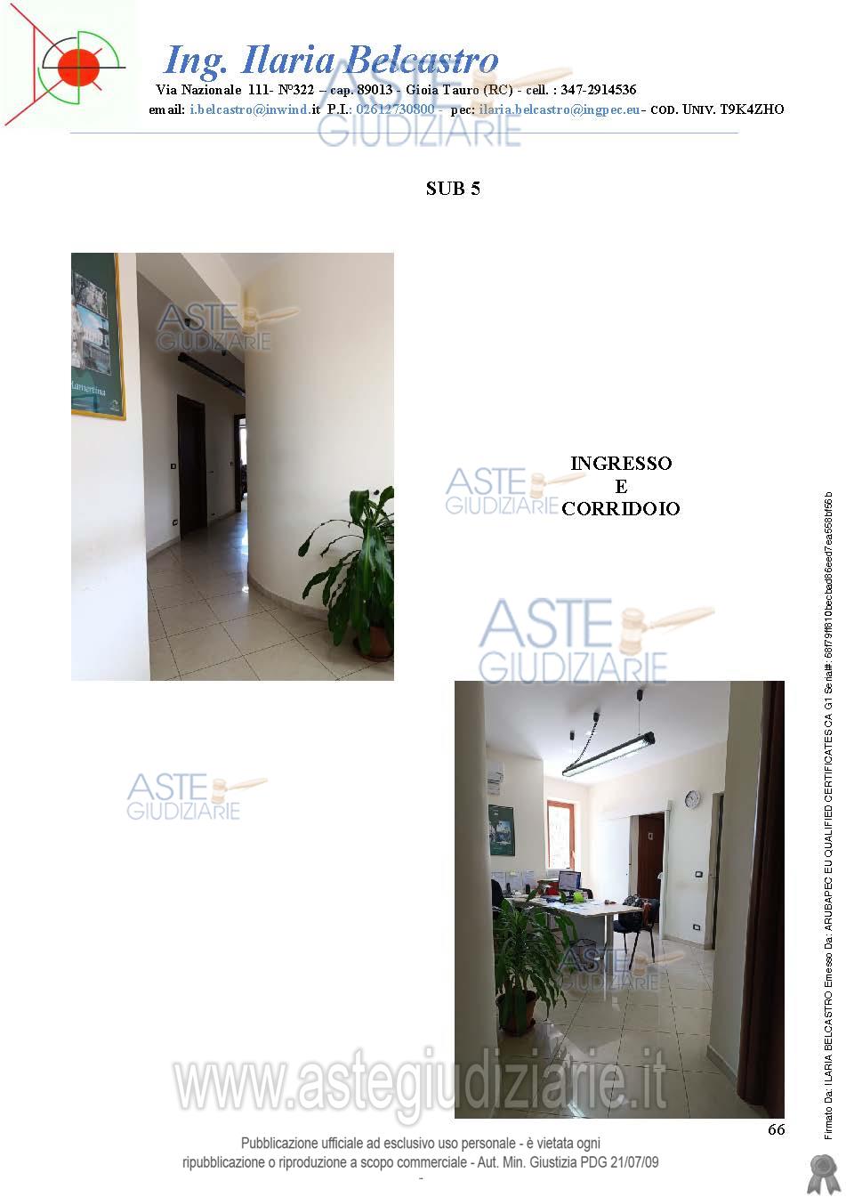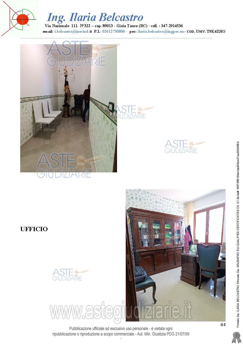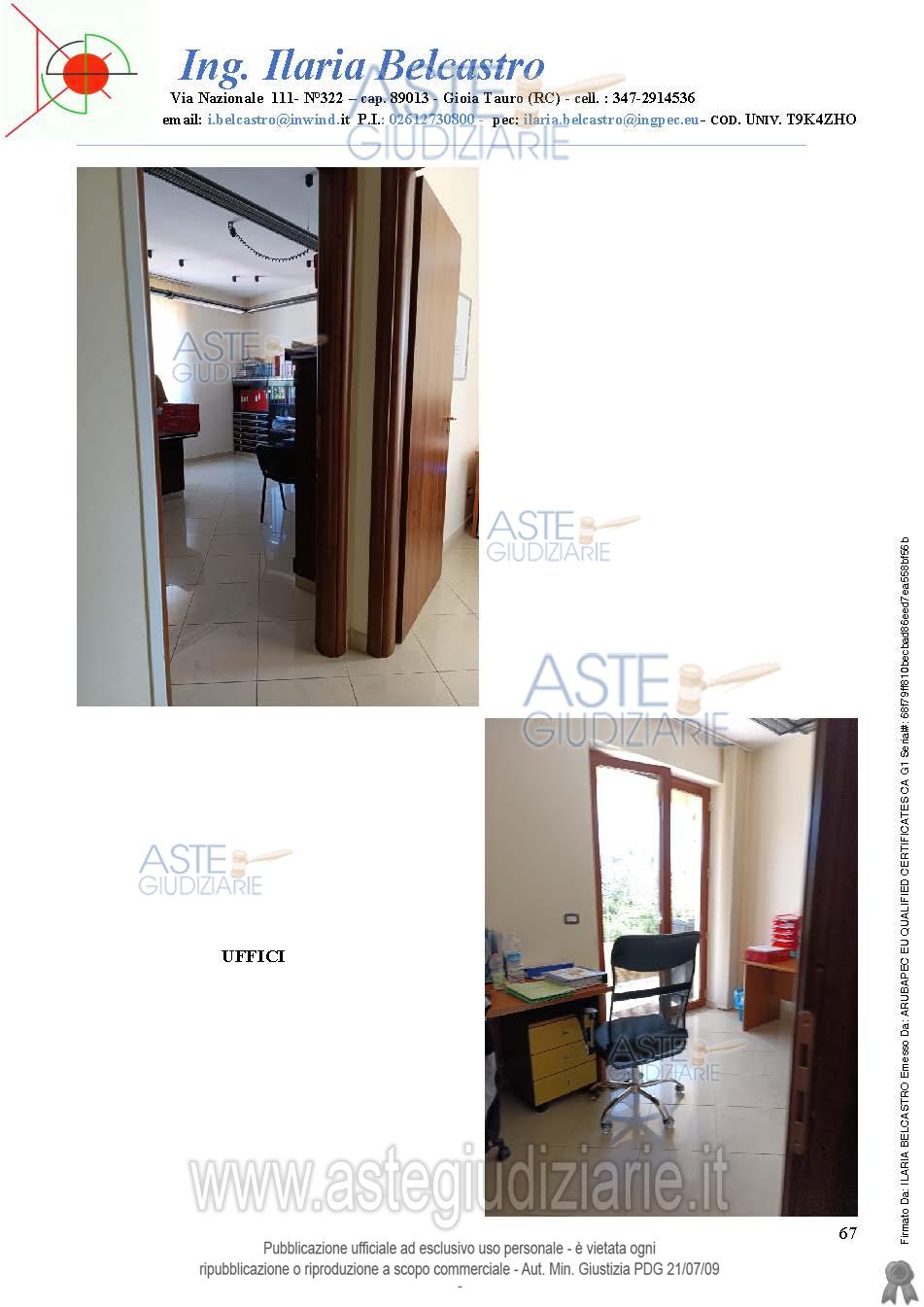 Vendita all'asta Senza incanto, con gara telematica asincrona - LOTTO 2: Diritto di piena ed intera proprietà su unità immobiliare uso commerciale-ufficio posta al primo piano di una palazzina ubicata nel comune di Taurianova (RC) alla Via F. Sofia Alessio (Via La Resta I’ Traversa, n. 2), composto da ingresso principale, ampio androne, ufficio accettazione e diversi uffici e tra questi 1 ufficio amministrativo, 2 uffici tecnici, 1 archivio, 1 ampio deposito ed 1 ripostiglio. Prezzo base € 38.144,00 (offerta minima € 28.608,00). Data inizio operazioni di vendita: 27/03/2026 ore 16:00. Professionista delegato alla vendita Dott. Nicodemo Depino. Rif. Tribunale di Palmi - Esecuzione immobiliare n. 67/2024