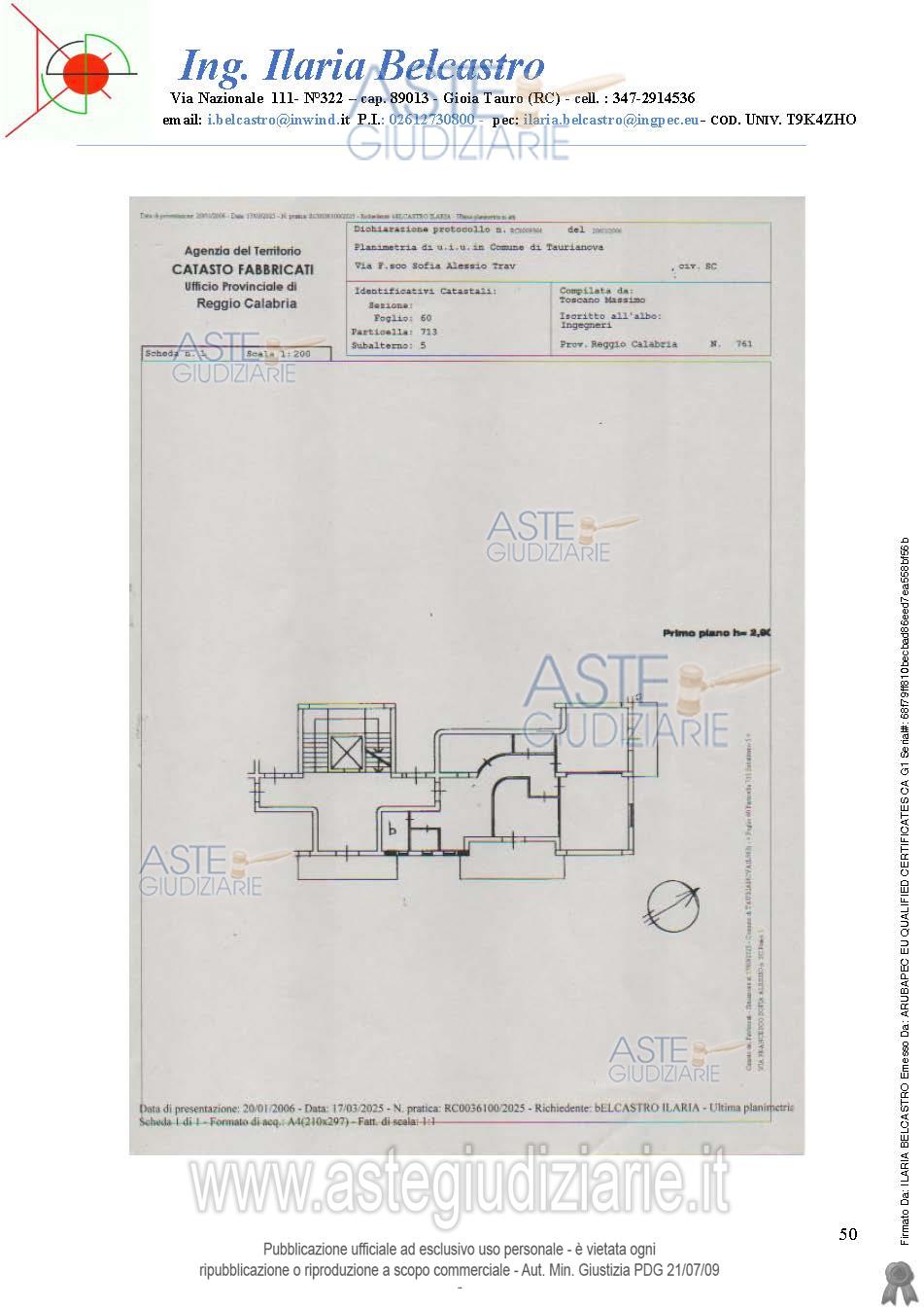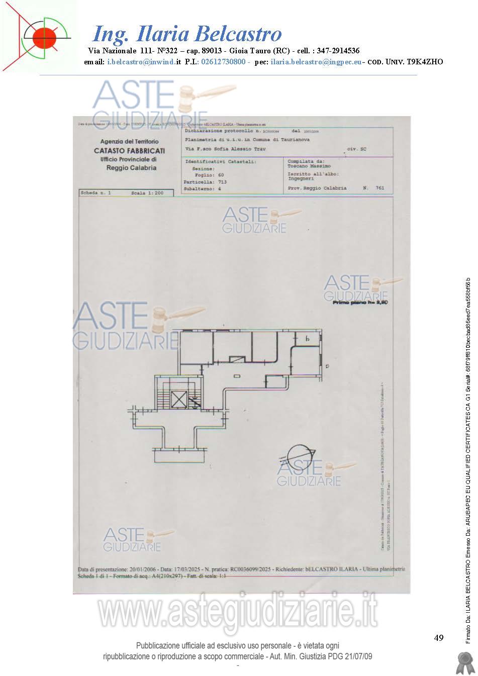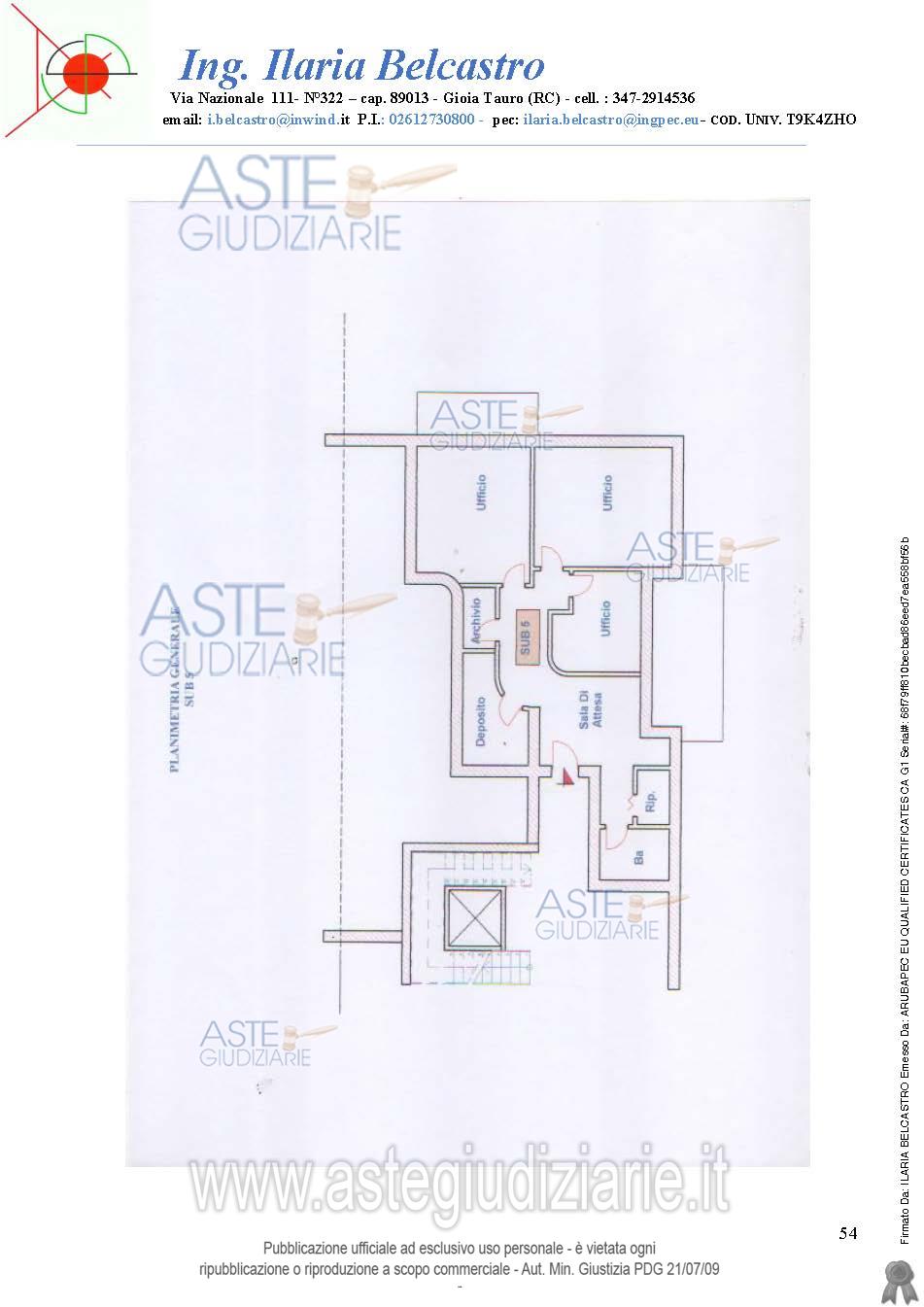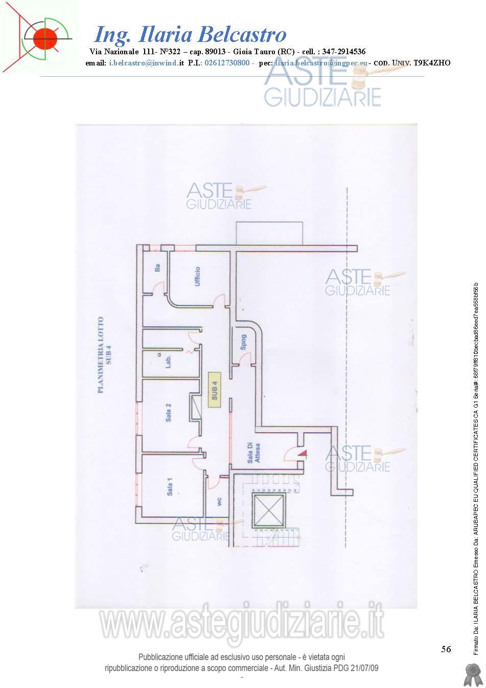 Vendita all'asta Senza incanto, con gara telematica asincrona - LOTTO 2: Diritto di piena ed intera proprietà su unità immobiliare uso commerciale-ufficio posta al primo piano di una palazzina ubicata nel comune di Taurianova (RC) alla Via F. Sofia Alessio (Via La Resta I’ Traversa, n. 2), composto da ingresso principale, ampio androne, ufficio accettazione e diversi uffici e tra questi 1 ufficio amministrativo, 2 uffici tecnici, 1 archivio, 1 ampio deposito ed 1 ripostiglio. Prezzo base € 38.144,00 (offerta minima € 28.608,00). Data inizio operazioni di vendita: 27/03/2026 ore 16:00. Professionista delegato alla vendita Dott. Nicodemo Depino. Rif. Tribunale di Palmi - Esecuzione immobiliare n. 67/2024