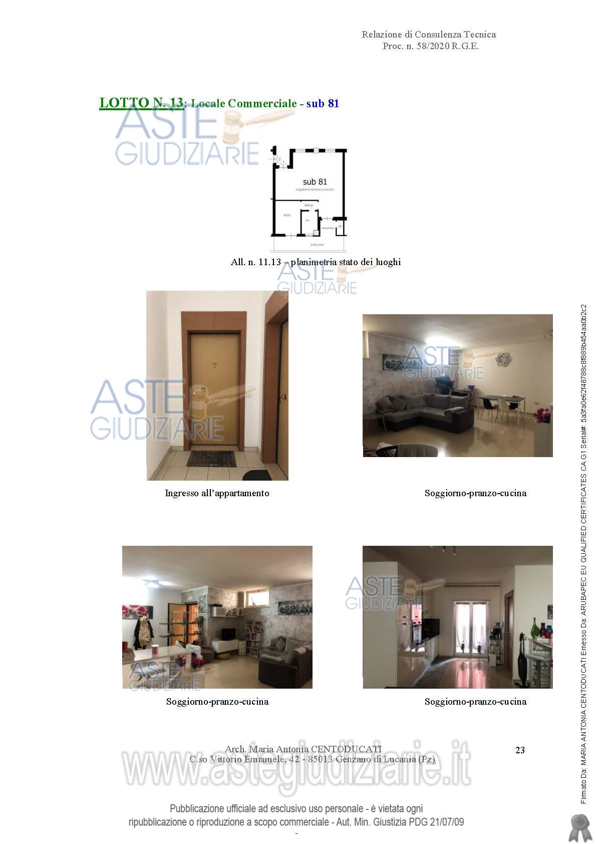 Vendita all'asta Senza incanto - LOTTO 13: diritti pari all’intero (1/1) in piena proprietà di un appartamento sito nel Comune di Tito (PZ) alla C.da Santa Loja, piano secondo, costituito da un soggiorno-pranzo-cucina, un disimpegno, una camera da letto, un bagno ed un ripostiglio lavanderia. Prezzo base € 38.812,50 (offerta minima € 29.109,37). Data vendita 09/07/2026 ore 10:00. Professionista delegato alla vendita: Avv. Francesco Missanelli - Email "francescomissanelli@gmail.com"; Tel. 0971/443116.
