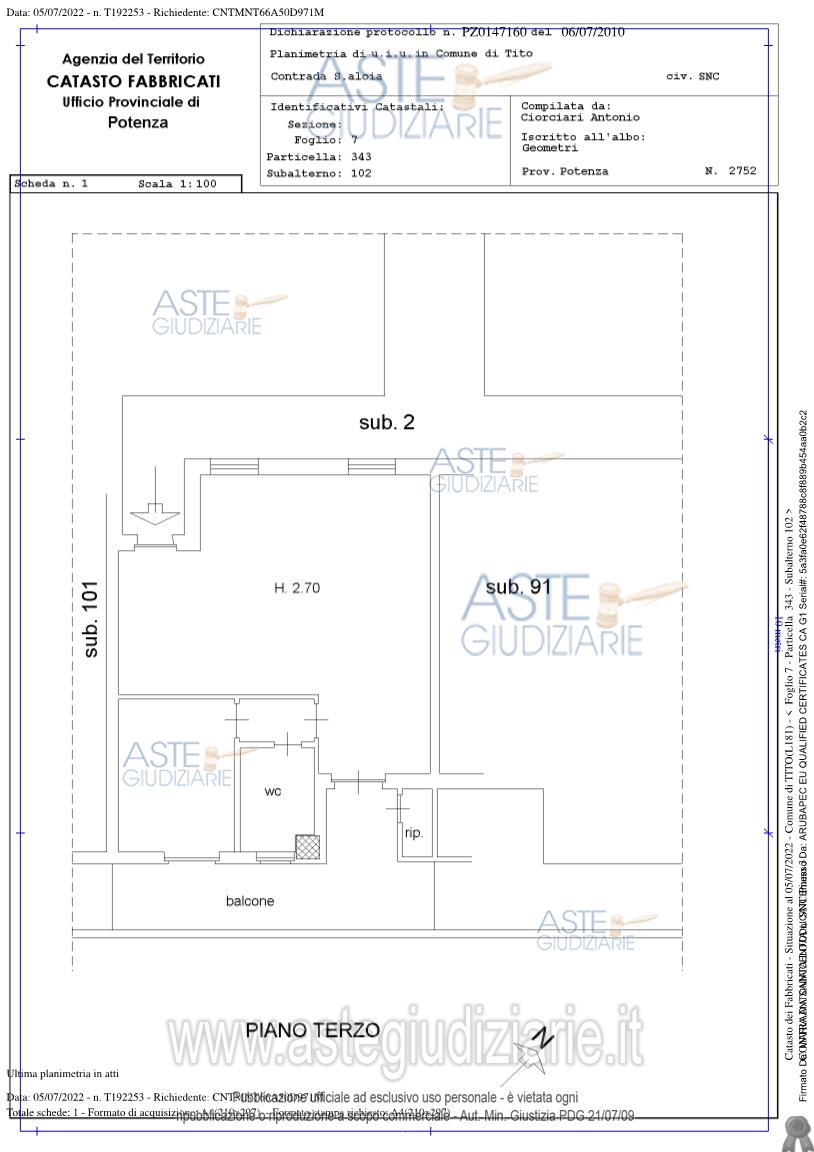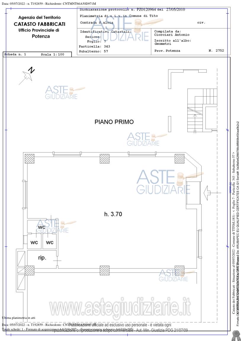 Custode Giudiziario: Avv. Antonio Lomonaco - Email "avv.lomonacoantonio@libero.it"; Tel. 0971/476444.